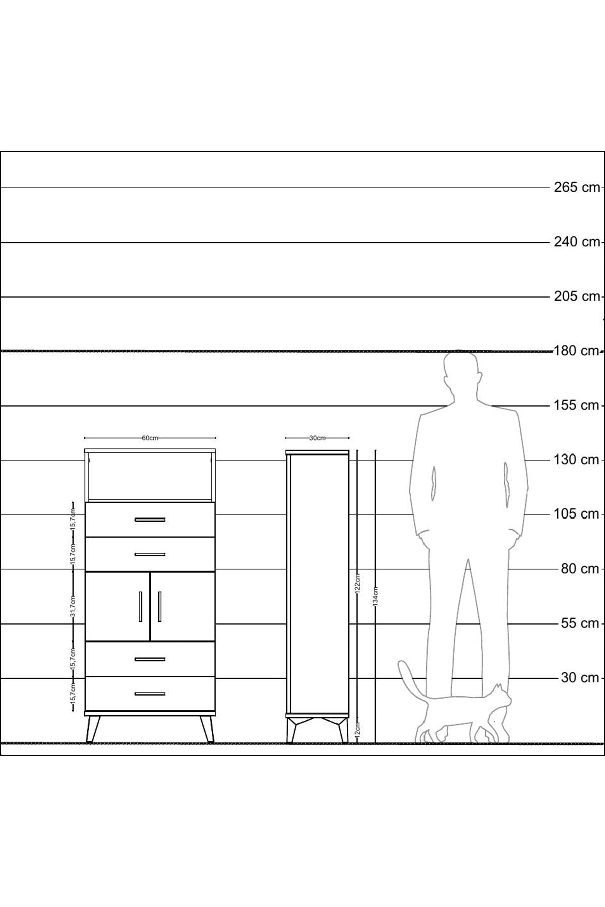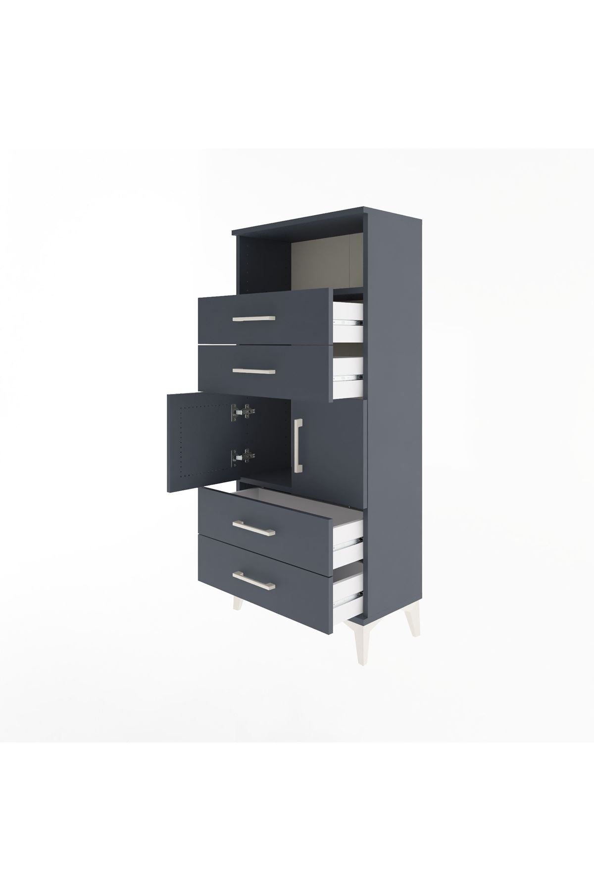 Arges Dolap 2 Raflı 4 Çekmeceli 2 Kapaklı 60x30x134 Antrasit-Antrasit