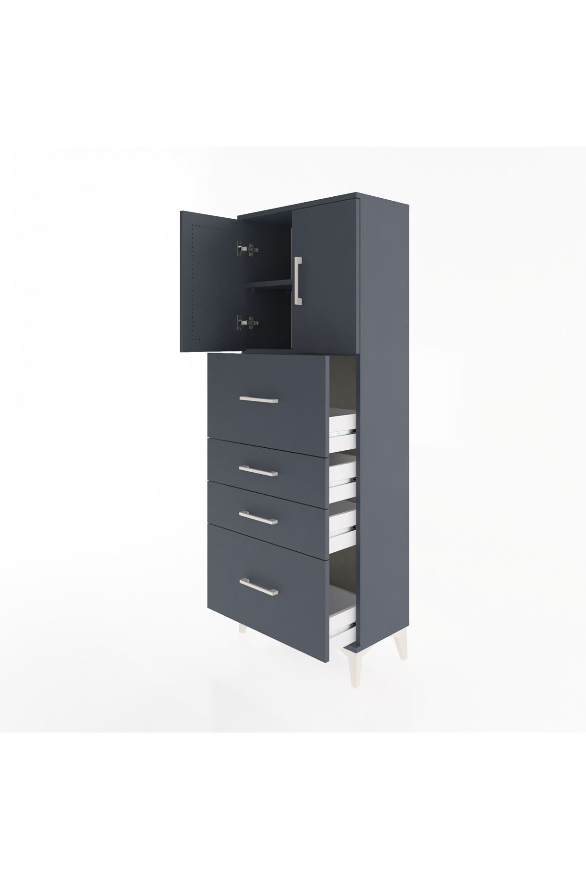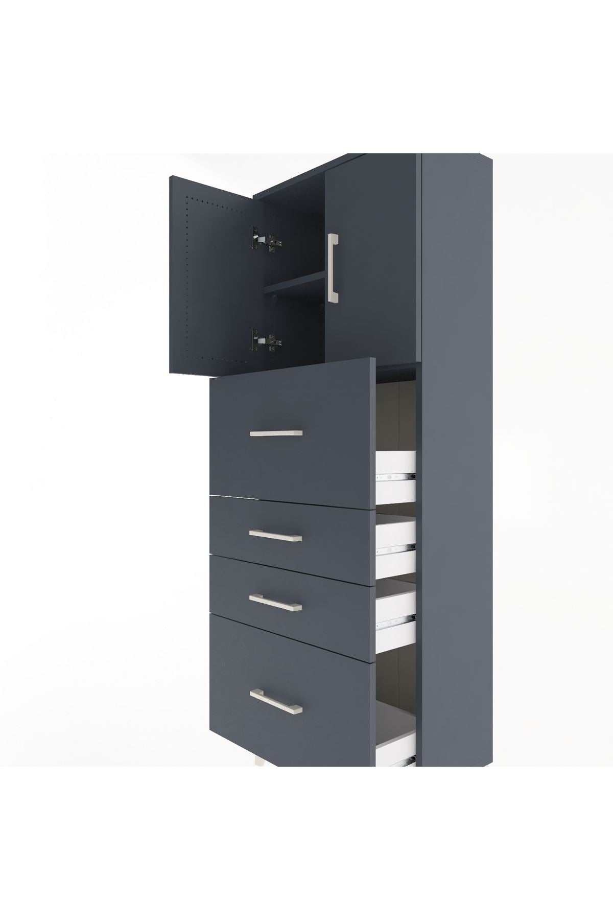 Arges Dolap 2 Raflı 4 Çekmeceli 2 Kapaklı 60x30x163 Antrasit-Antrasit