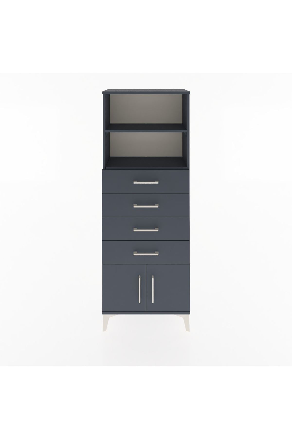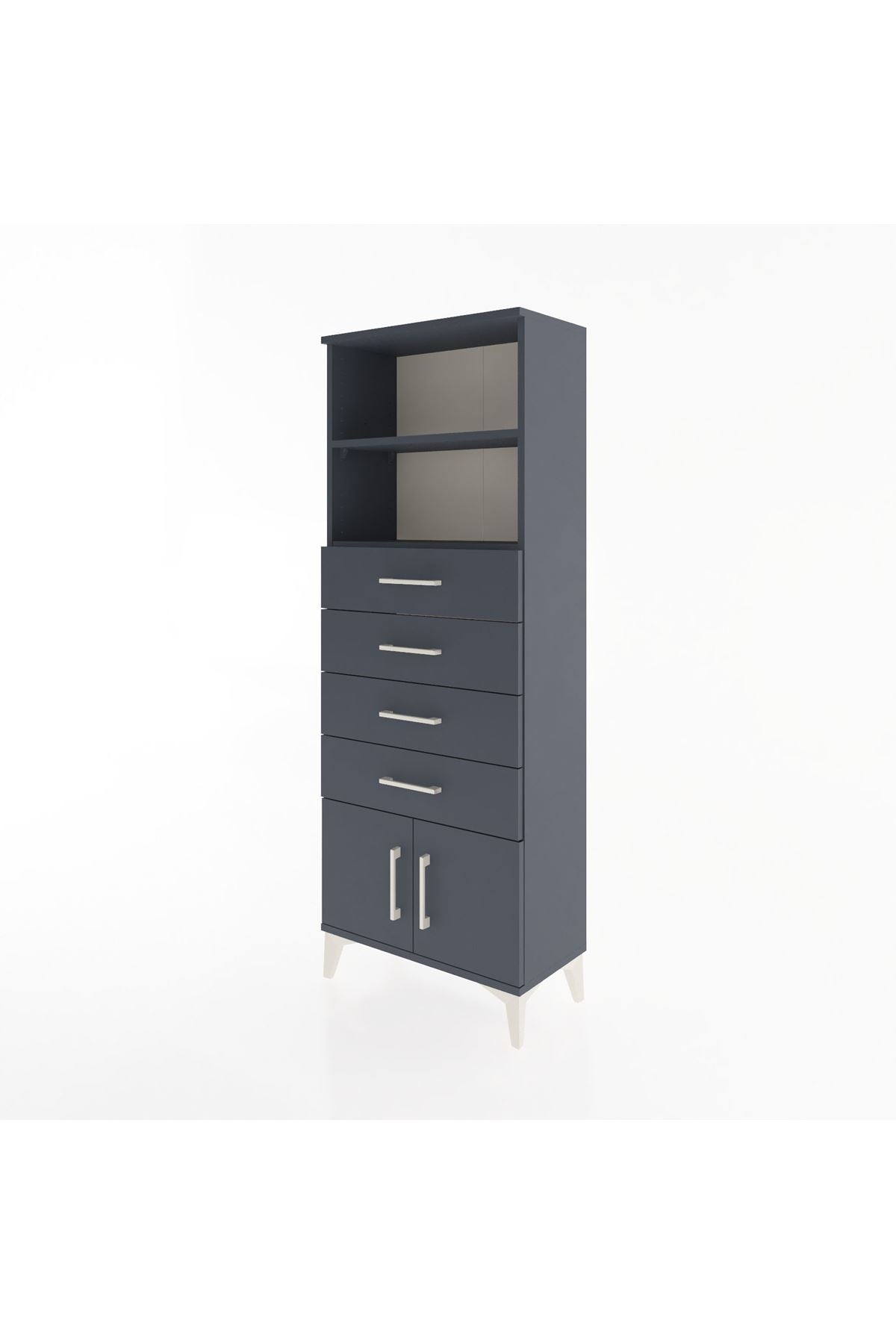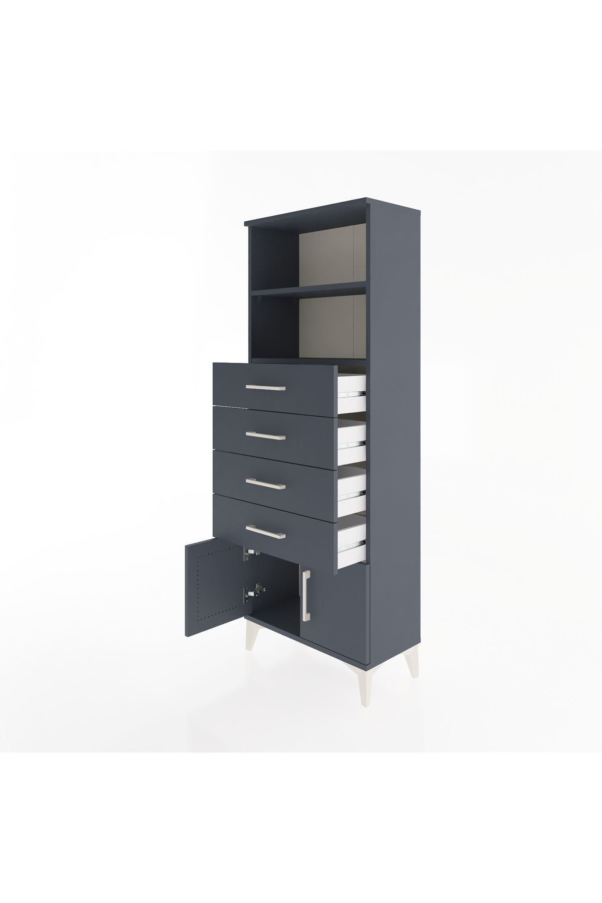 Arges Dolap 2 Raflı 4 Çekmeceli 2 Kapaklı 60x30x163 Antrasit-Antrasit