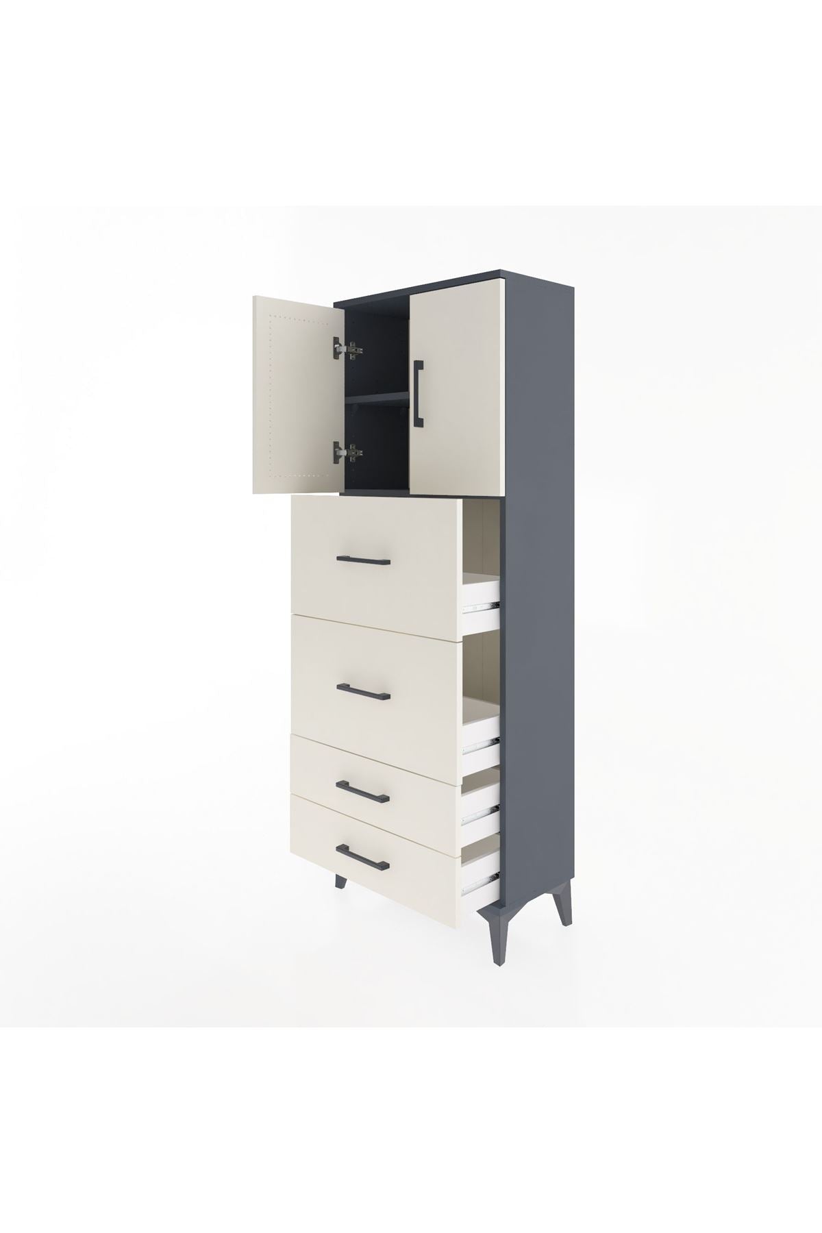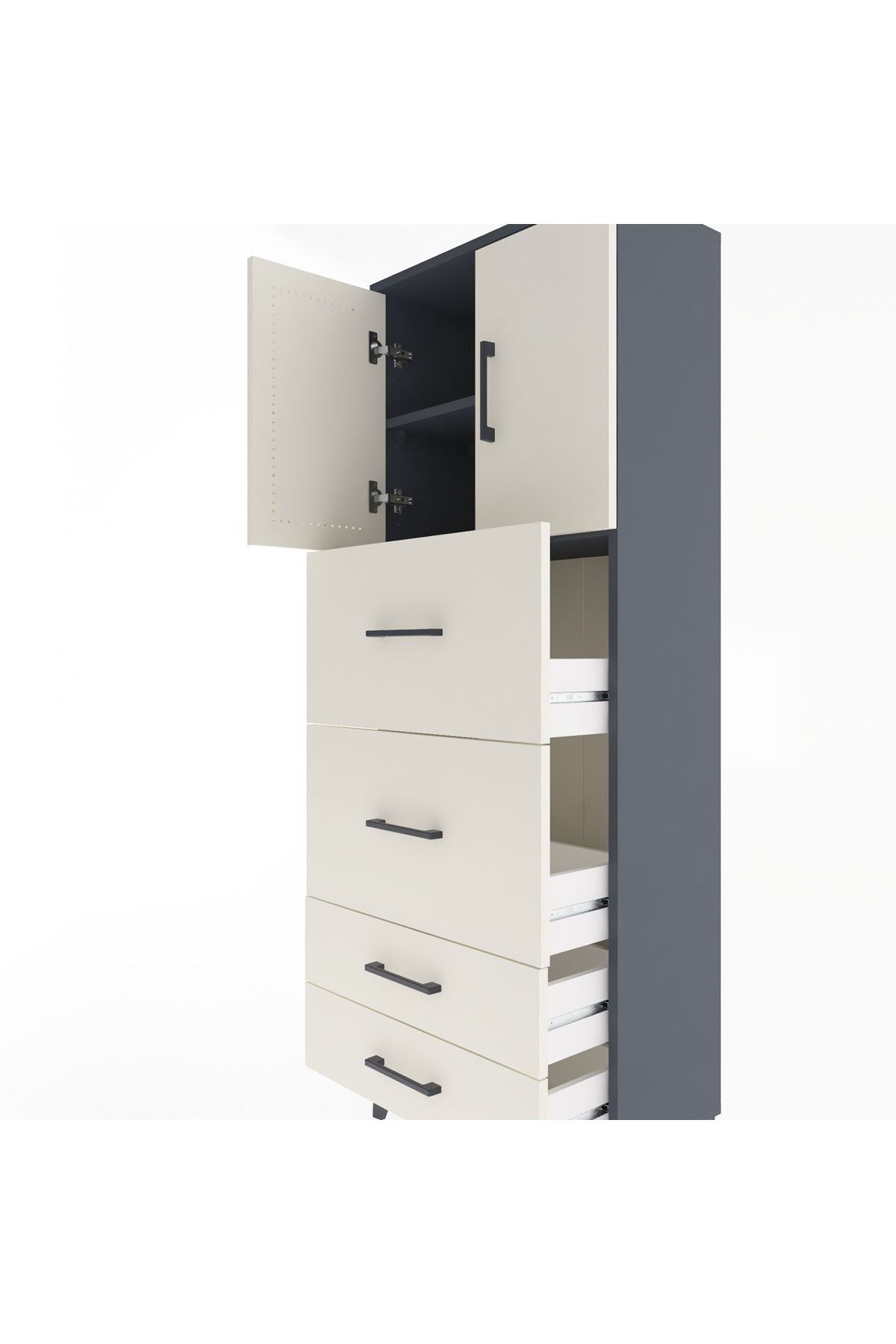 Arges Dolap 2 Raflı 4 Çekmeceli 2 Kapaklı 60x30x163 Antrasit-Aytaşı