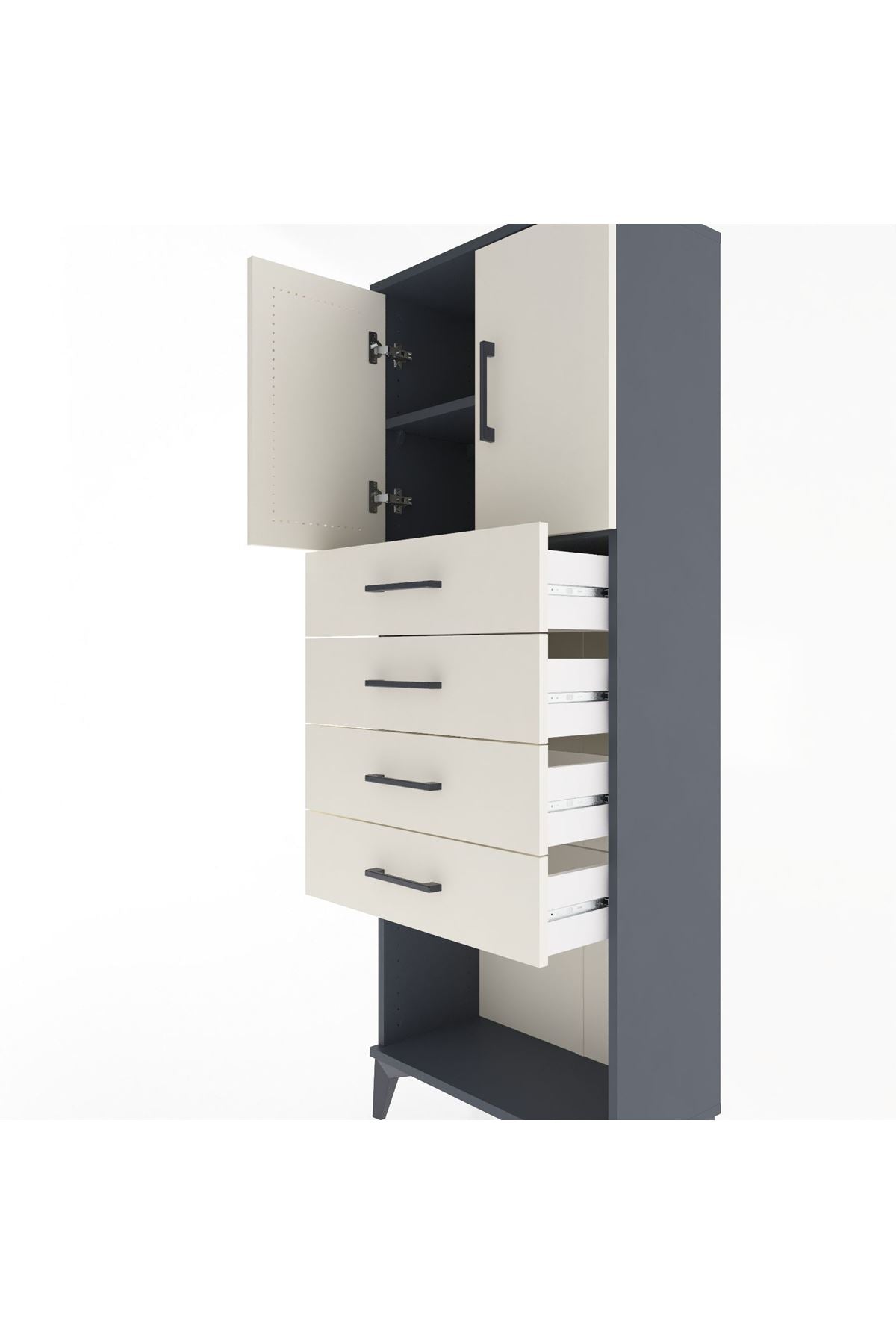 Arges Dolap 2 Raflı 4 Çekmeceli 2 Kapaklı 60x30x163 Antrasit-Aytaşı