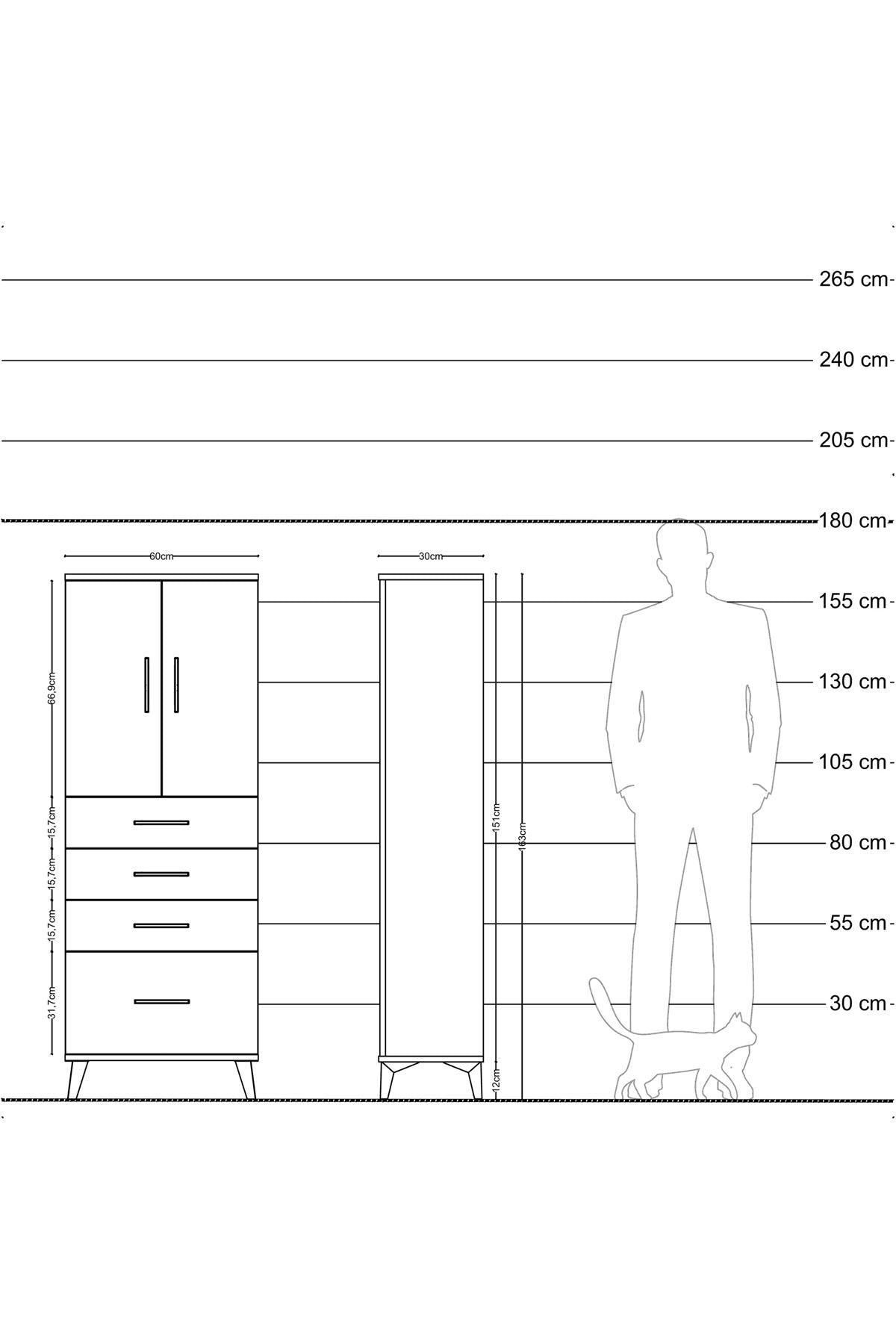 Arges Dolap 2 Raflı 4 Çekmeceli 2 Kapaklı 60x30x163 Antrasit-Çam