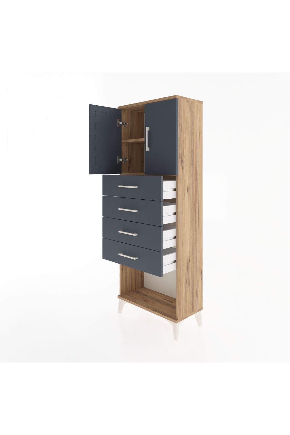 Arges Dolap 2 Raflı 4 Çekmeceli 2 Kapaklı 60x30x163 Çam-Antrasit