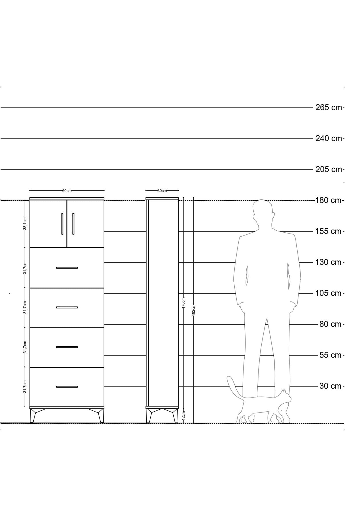 Arges Dolap 2 Raflı 4 Çekmeceli 2 Kapaklı 60x30x182 Antrasit-Çam
