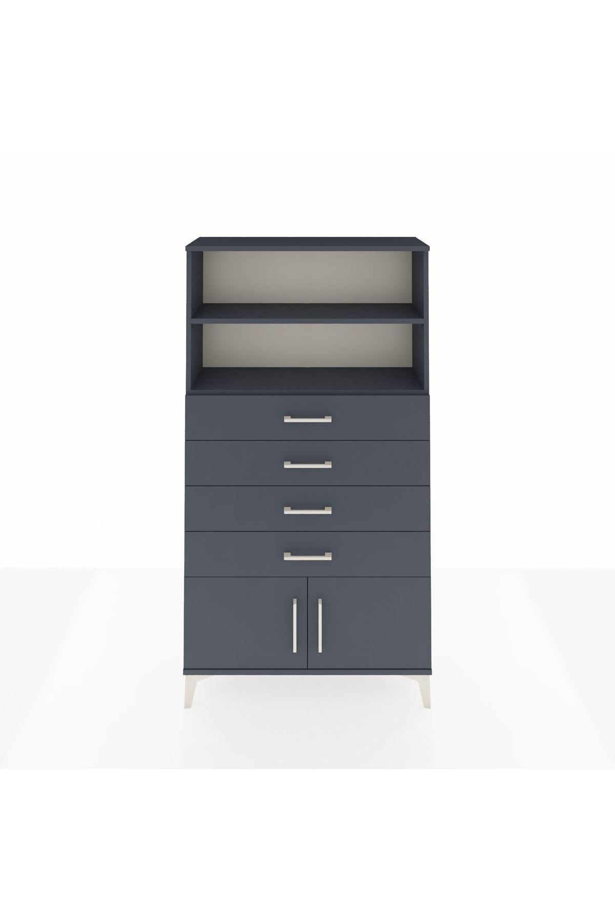 Arges Dolap 2 Raflı 4 Çekmeceli 2 Kapaklı 88x30x163 Antrasit-Antrasit