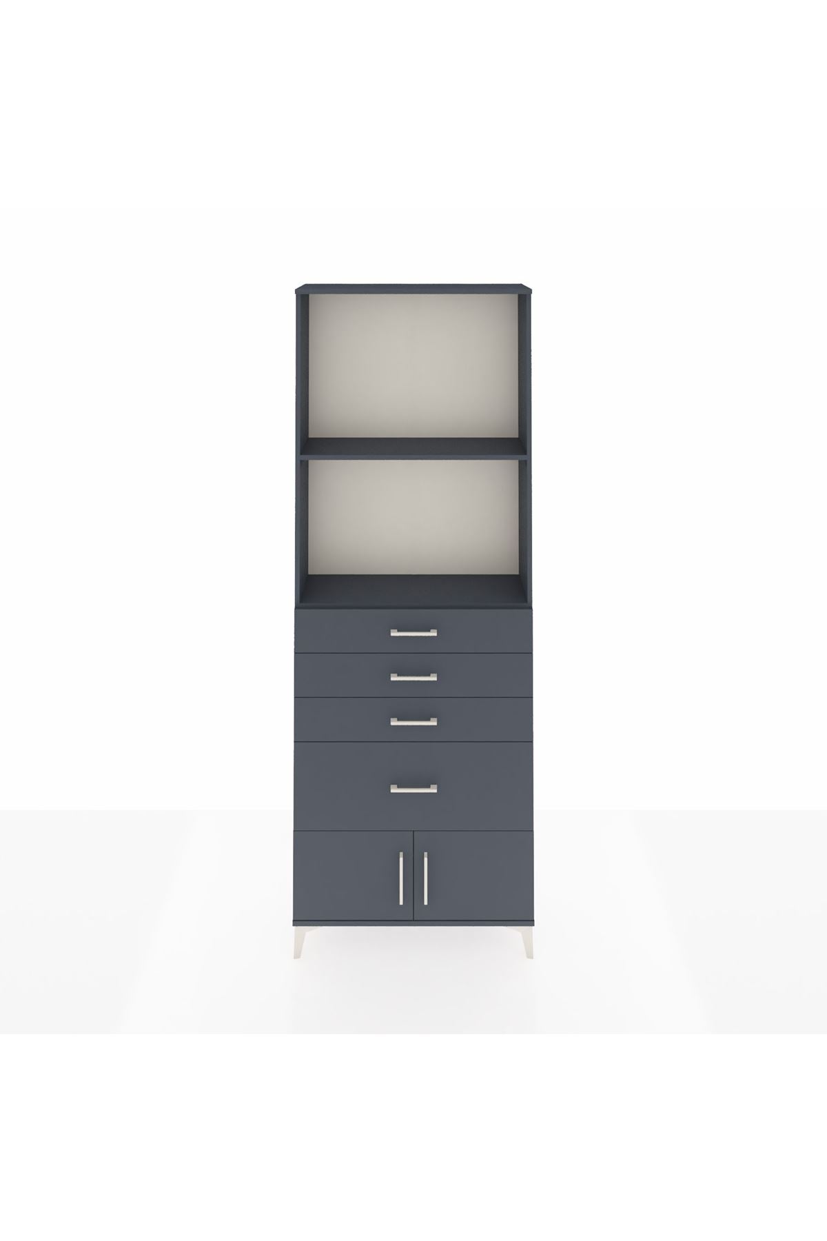 Arges Dolap 2 Raflı 4 Çekmeceli 2 Kapaklı 88x30x243 Antrasit-Antrasit