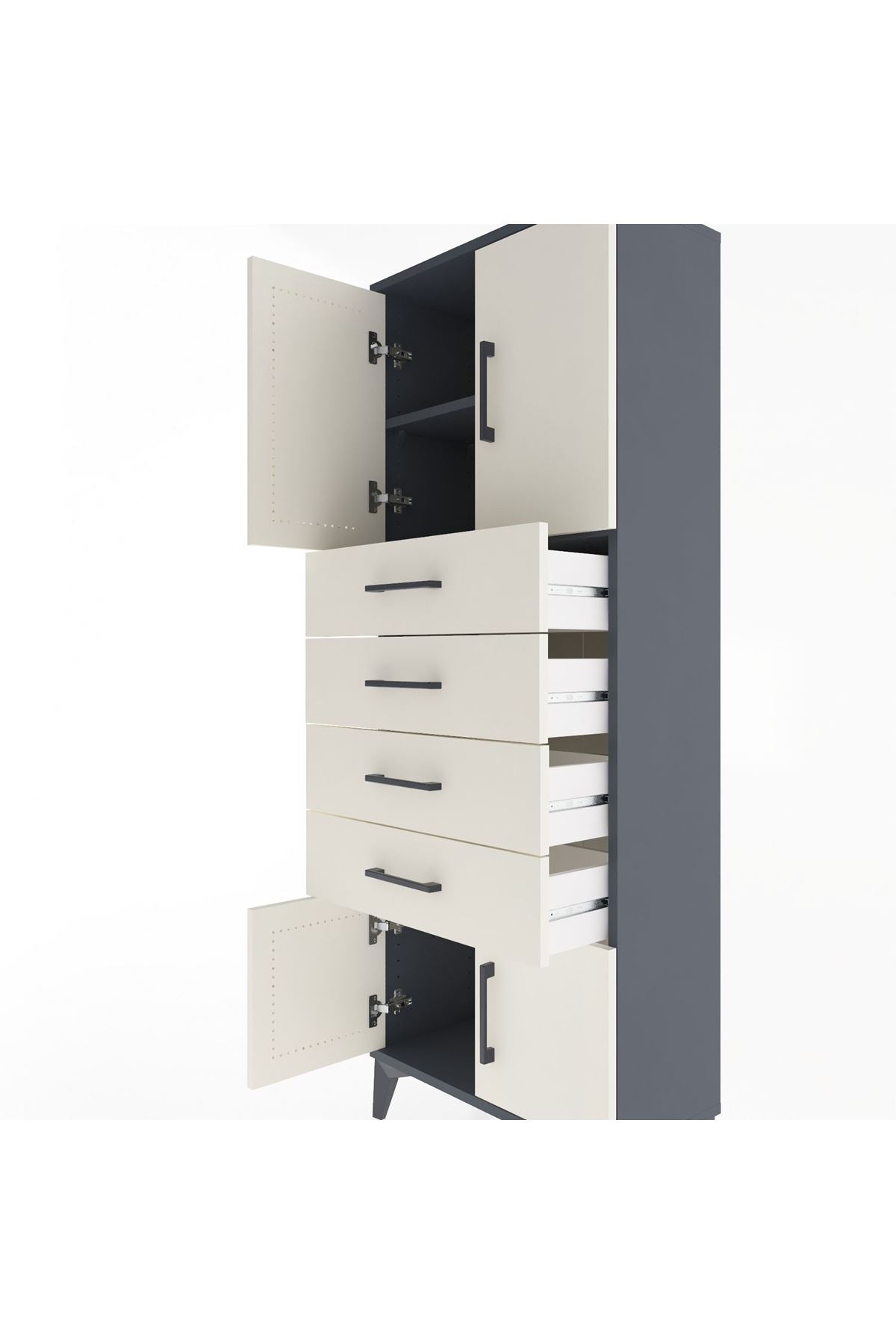 Arges Dolap 2 Raflı 4 Çekmeceli 4 Kapaklı 60x30x163 Antrasit-Aytaşı