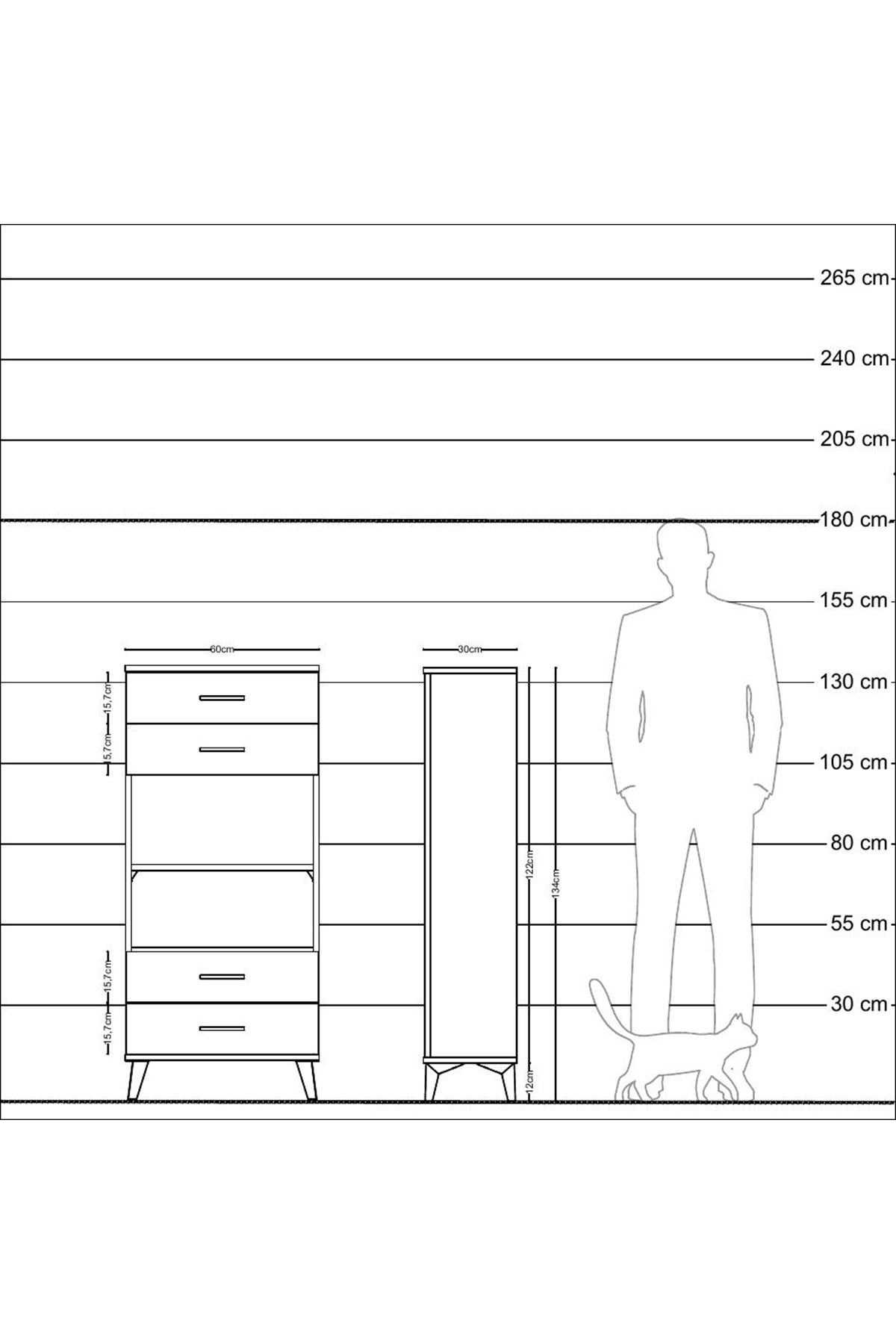 Arges Dolap 2 Raflı 4 Çekmeceli 60x30x134 Çam-Antrasit
