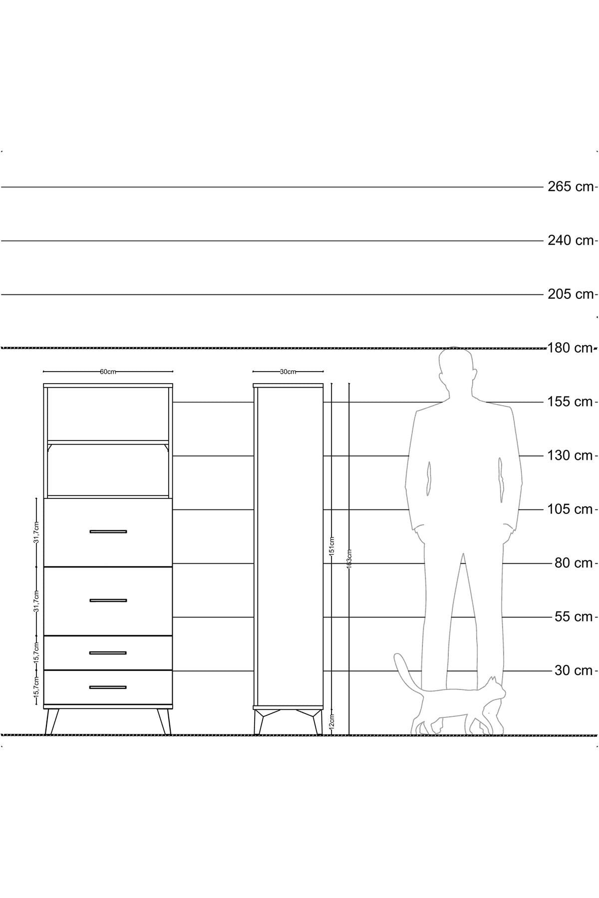 Arges Dolap 2 Raflı 4 Çekmeceli 60x30x163 Antrasit-Aytaşı