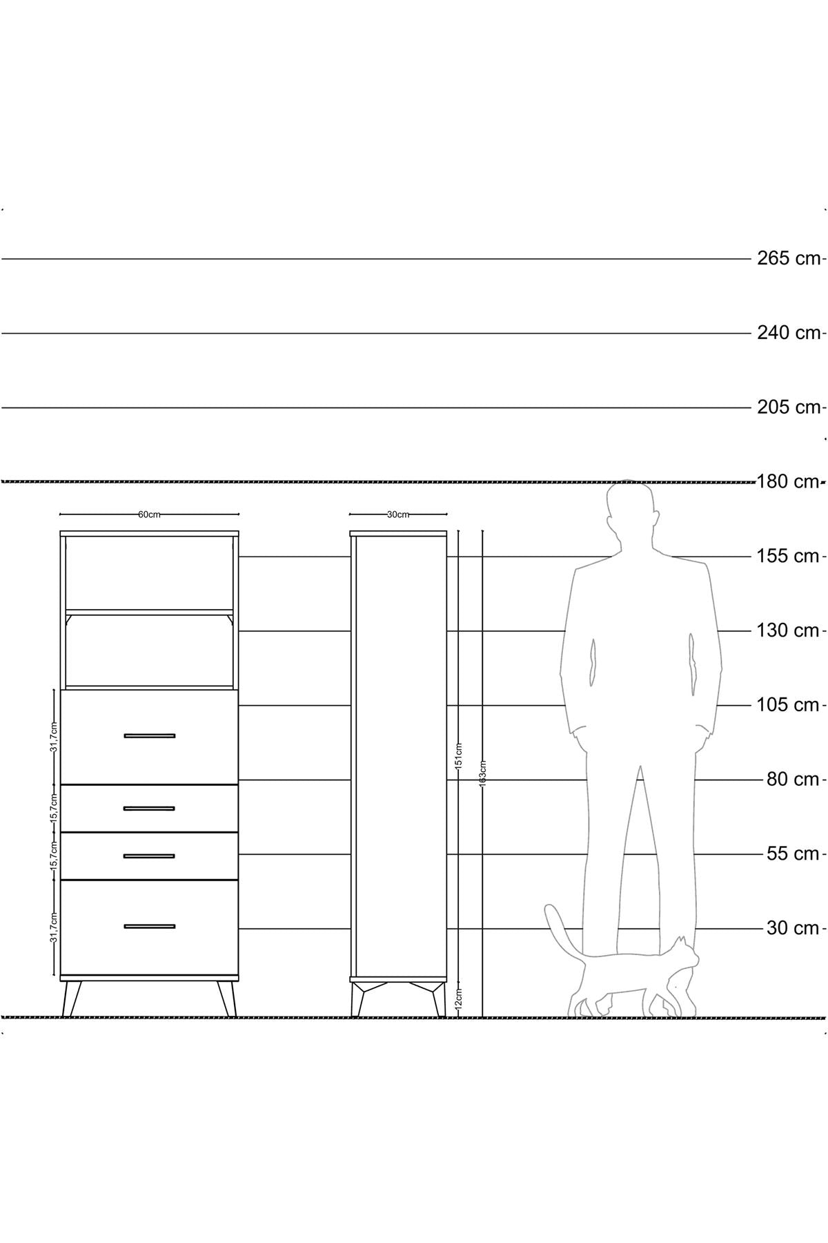Arges Dolap 2 Raflı 4 Çekmeceli 60x30x163 Antrasit-Çam