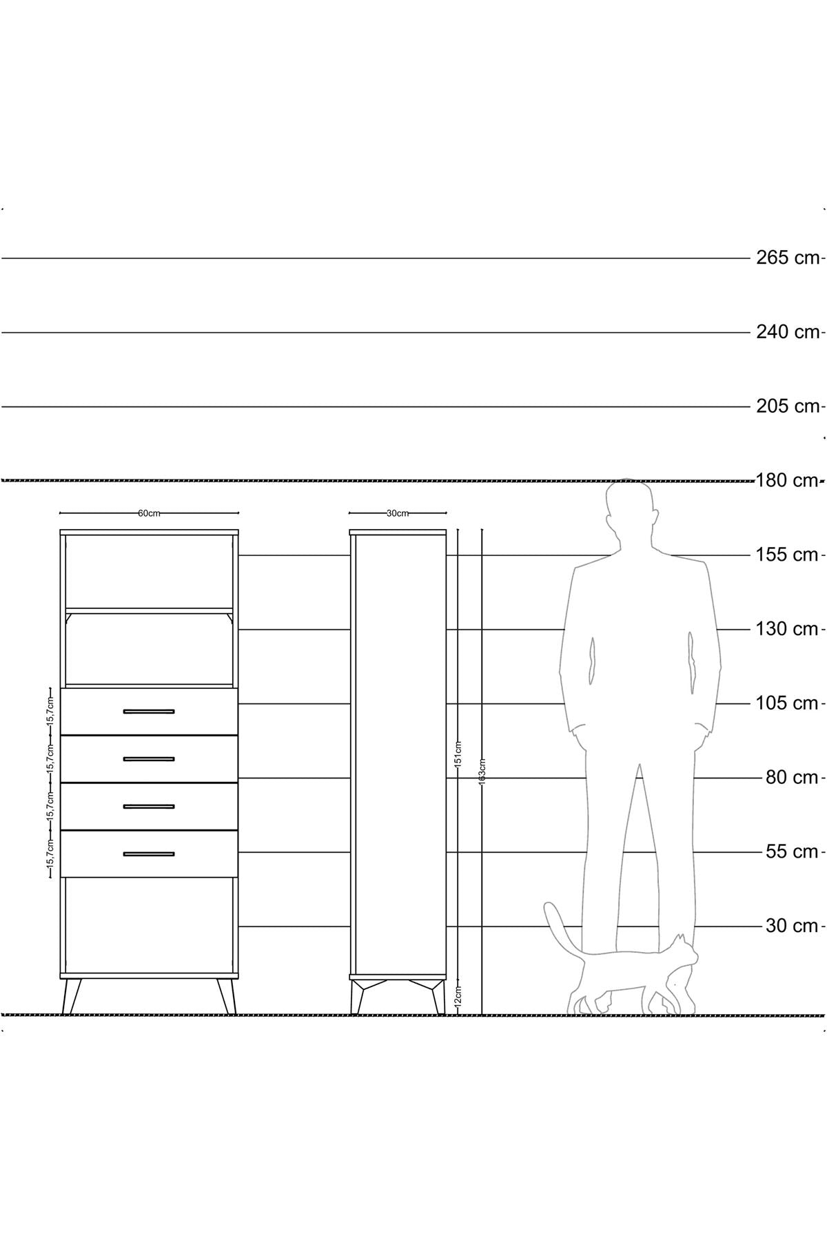 Arges Dolap 2 Raflı 4 Çekmeceli 60x30x163 Çam-Çam