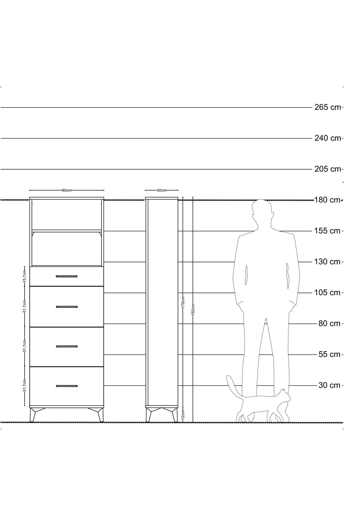 Arges Dolap 2 Raflı 4 Çekmeceli 60x30x182 Antrasit-Antrasit