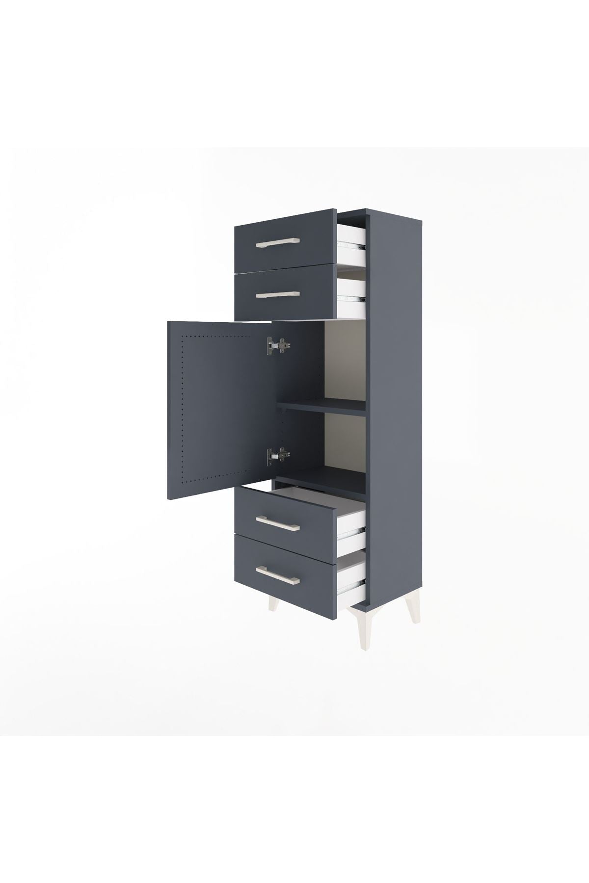 Arges Dolap 2 Raflı 4 Çekmeceli Tek Kapaklı 44x30x134 Antrasit-Antrasit