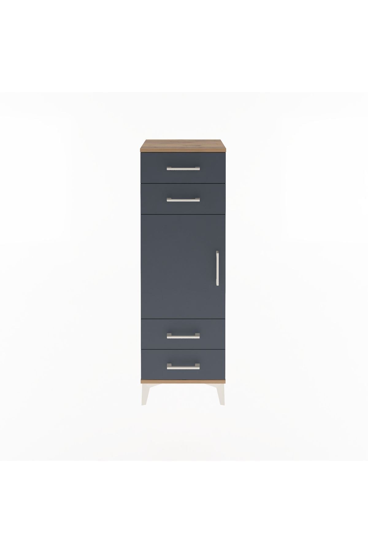 Arges Dolap 2 Raflı 4 Çekmeceli Tek Kapaklı 44x30x134 Çam-Antrasit
