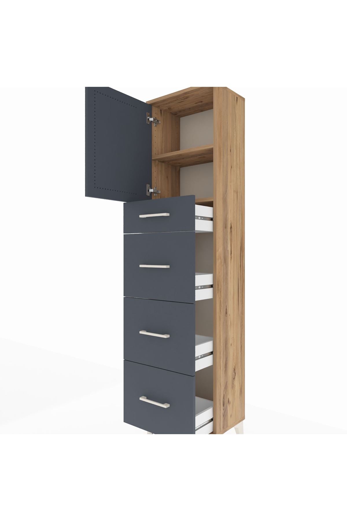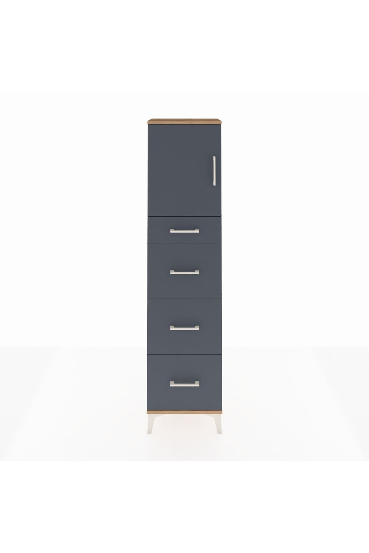 Arges Dolap 2 Raflı 4 Çekmeceli Tek Kapaklı 44x30x182 Çam-Antrasit