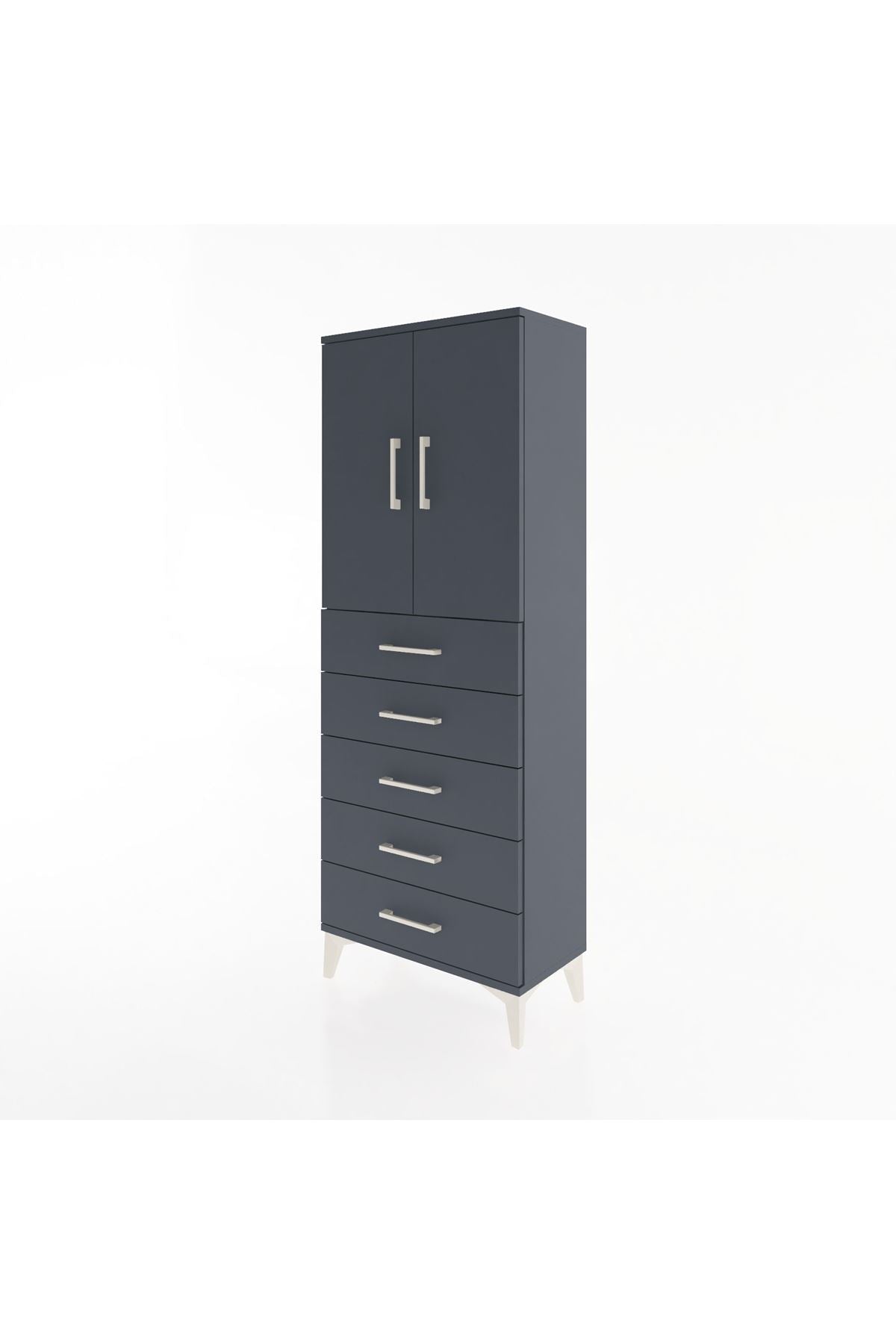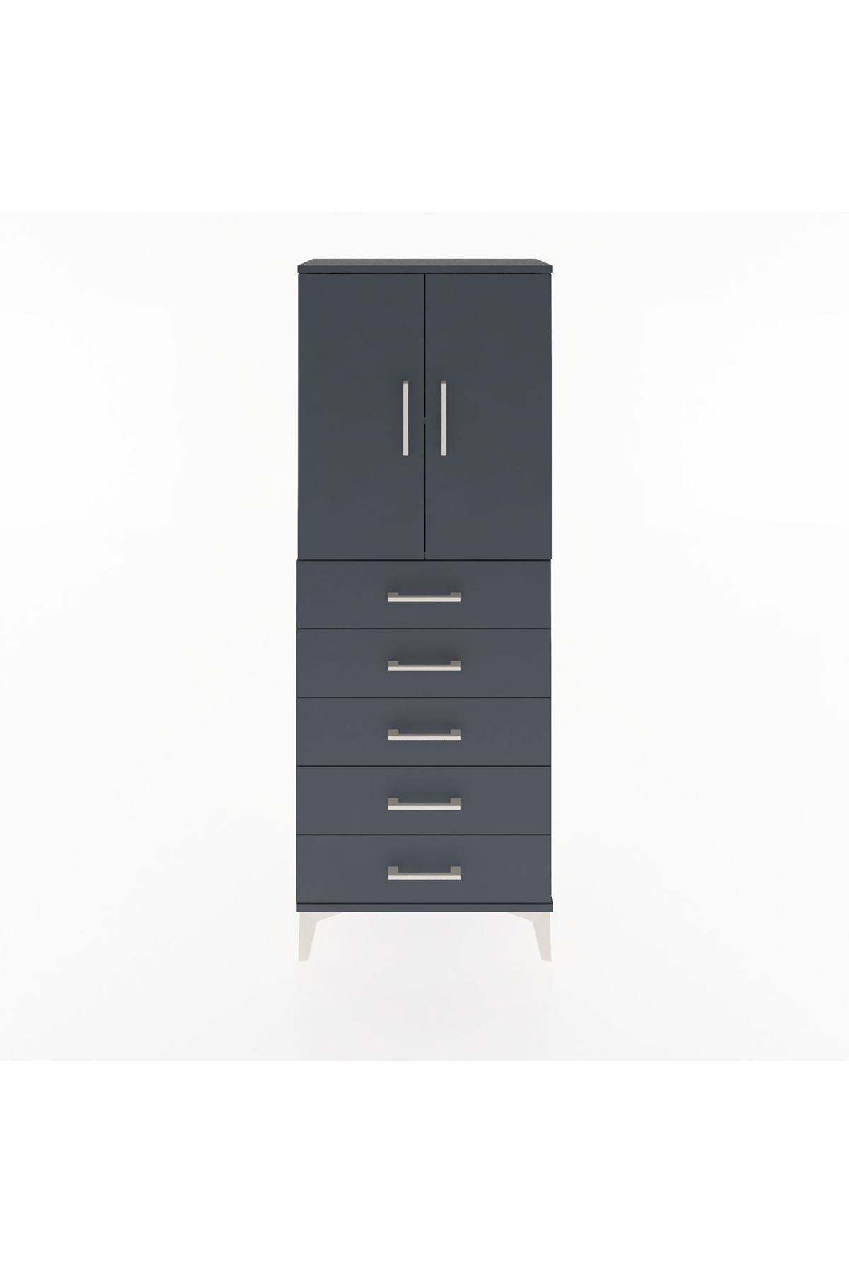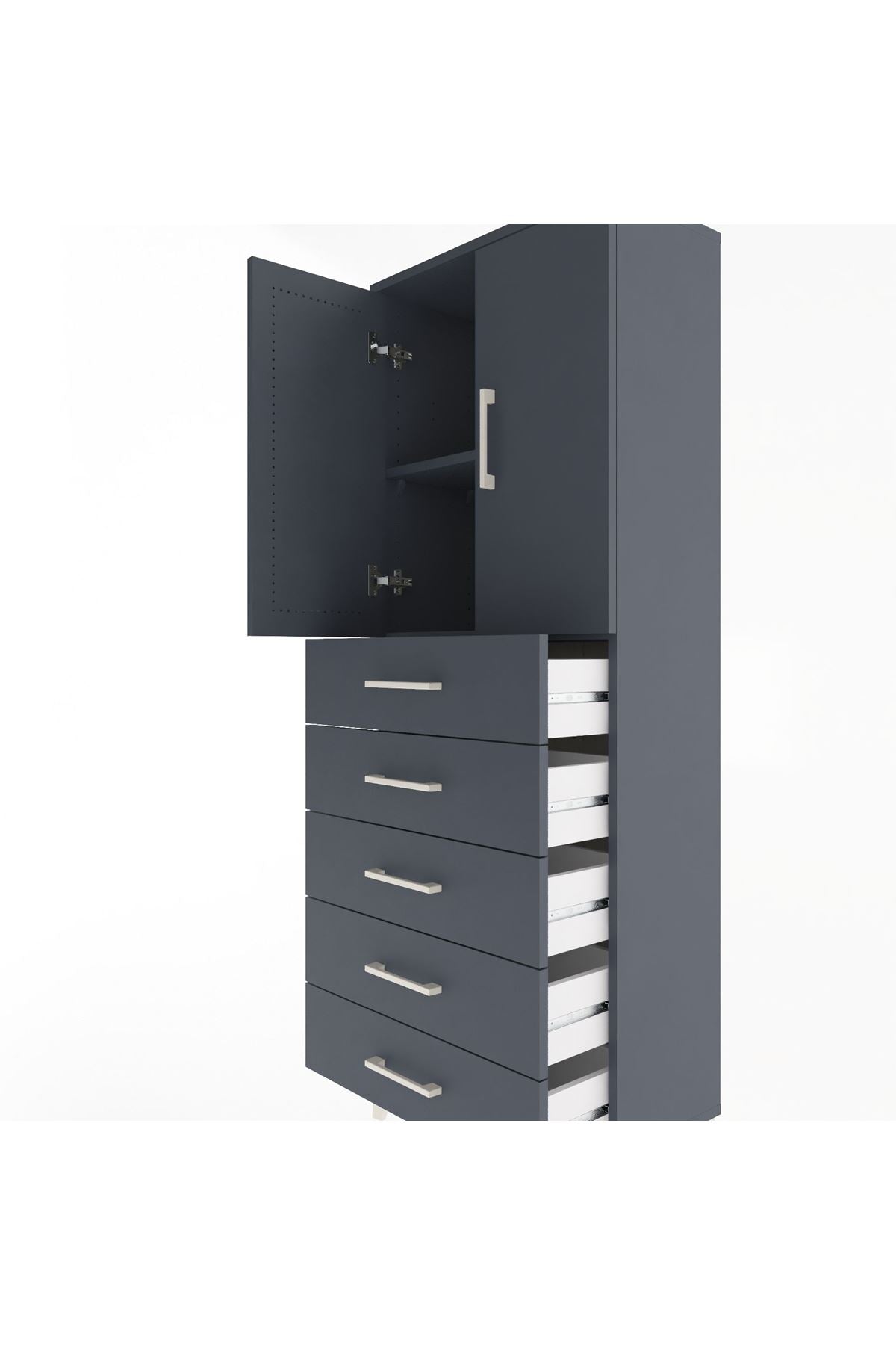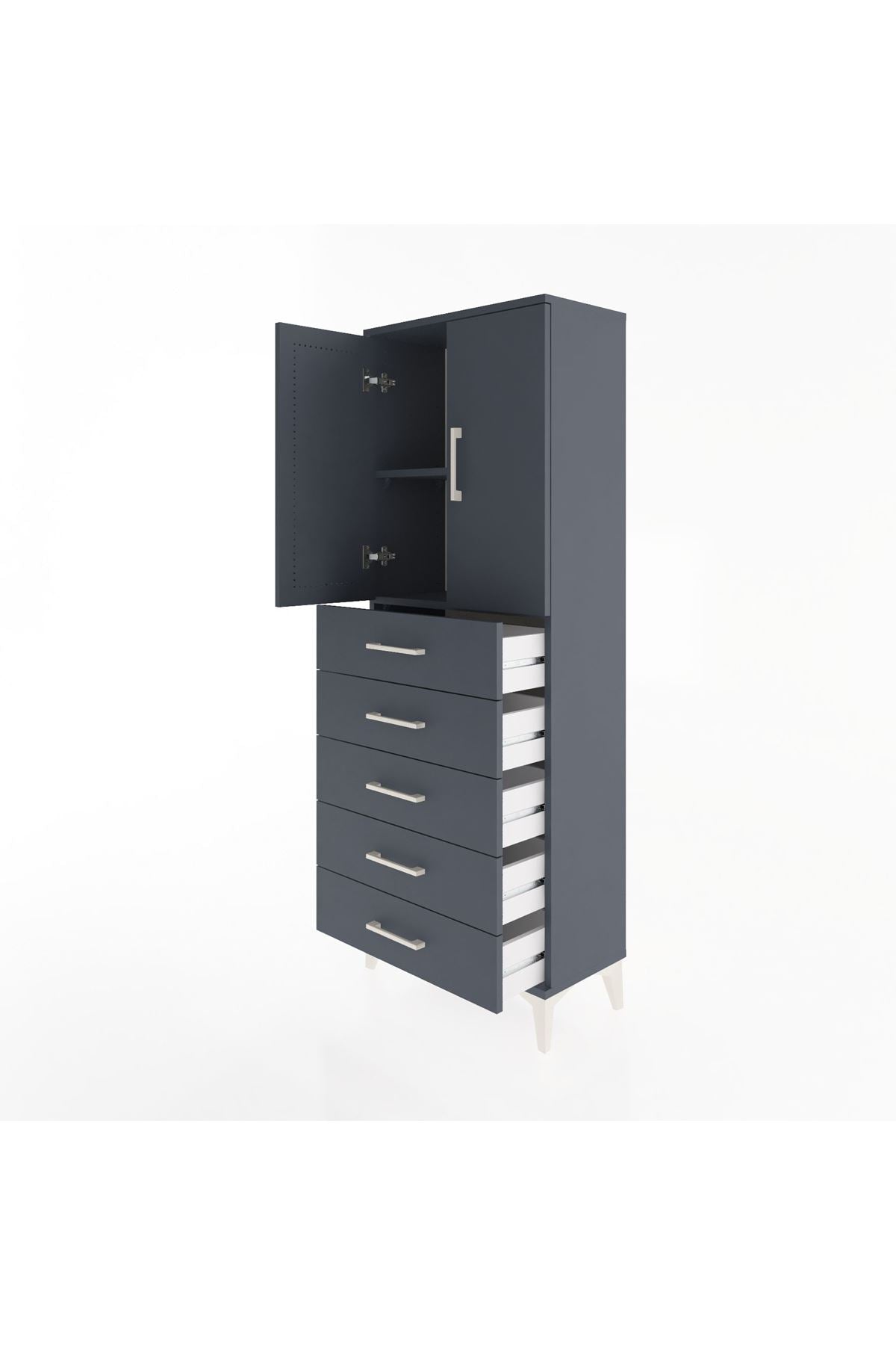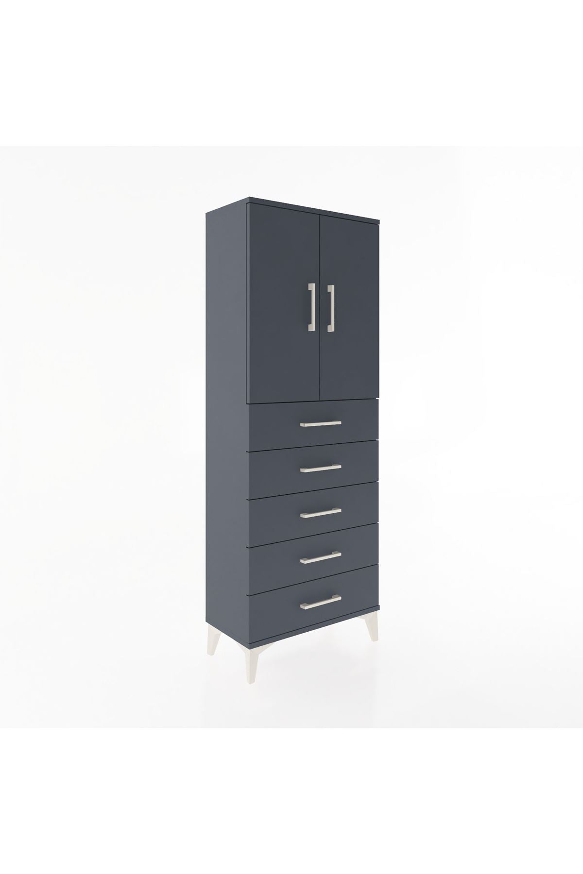 Arges Dolap 2 Raflı 5 Çekmeceli 2 Kapaklı 60x30x163 Antrasit-Antrasit