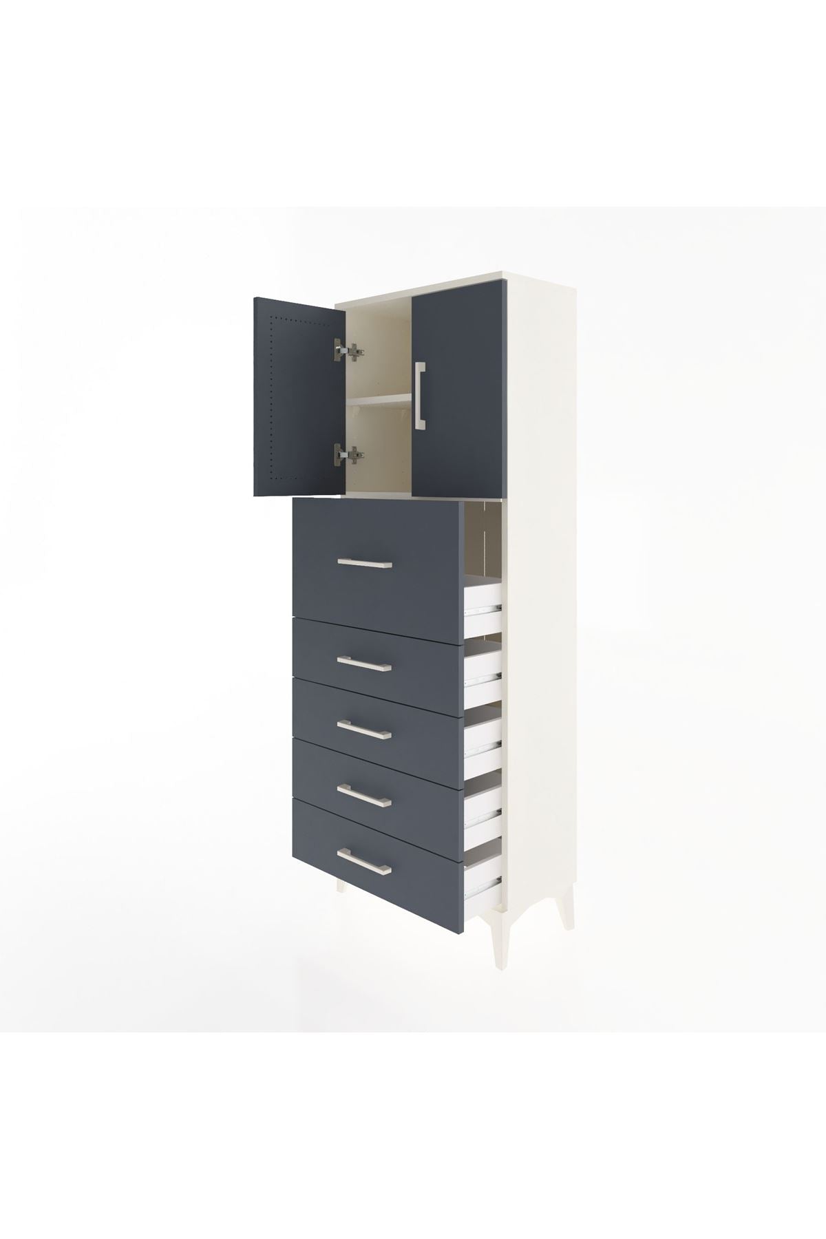 Arges Dolap 2 Raflı 5 Çekmeceli 2 Kapaklı 60x30x163 Aytaşı-Antrasit