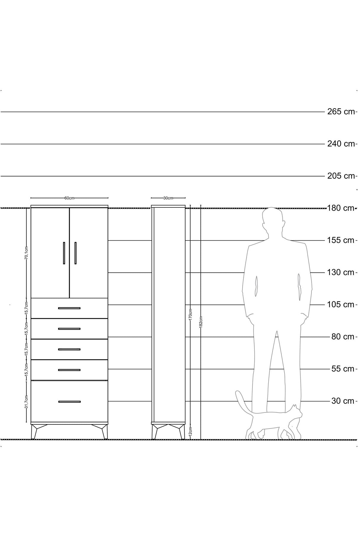 Arges Dolap 2 Raflı 5 Çekmeceli 2 Kapaklı 60x30x182 Aytaşı-Çam