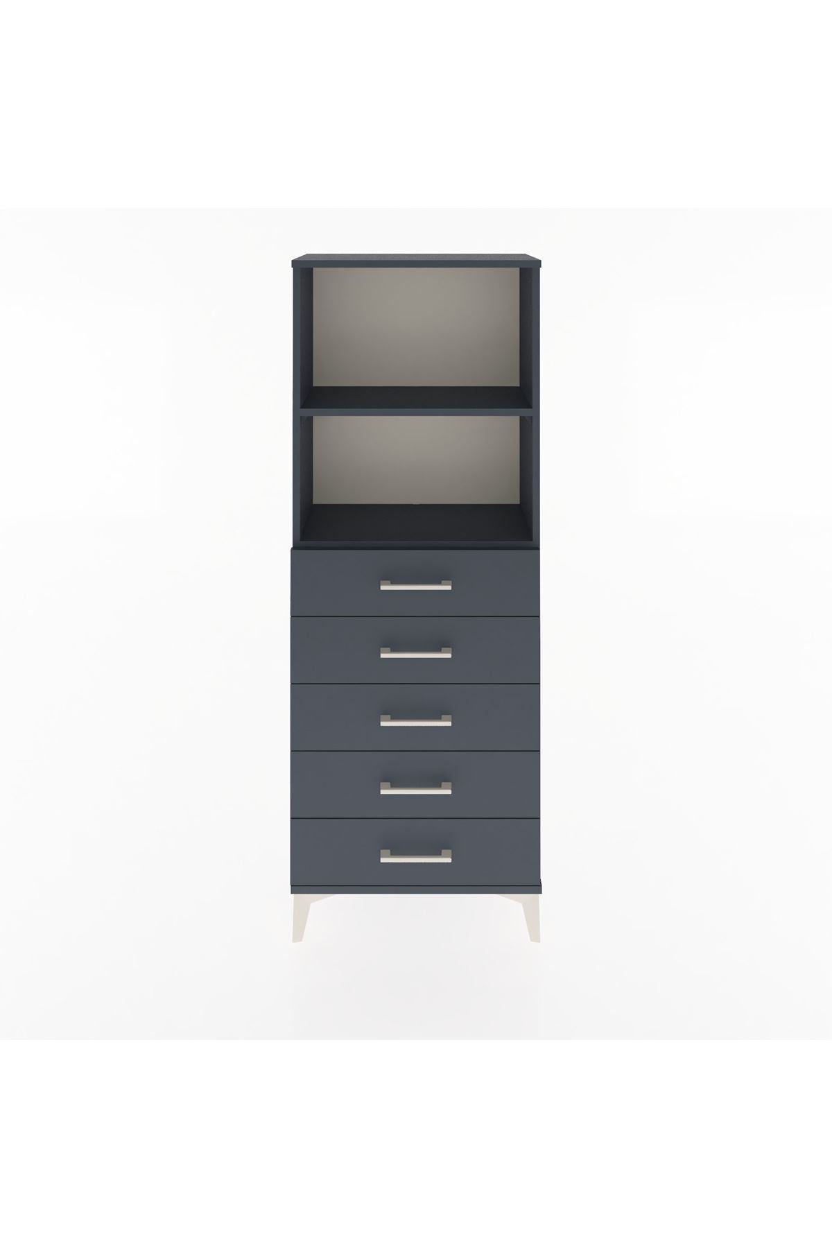 Arges Dolap 2 Raflı 5 Çekmeceli 60x30x163 Antrasit-Antrasit