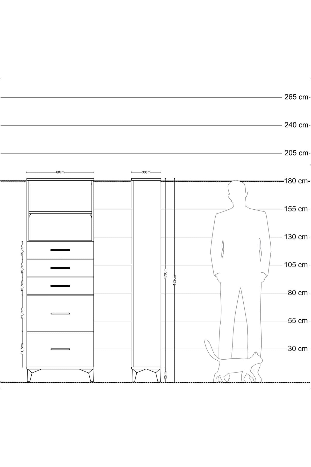 Arges Dolap 2 Raflı 5 Çekmeceli 60x30x182 Çam-Aytaşı