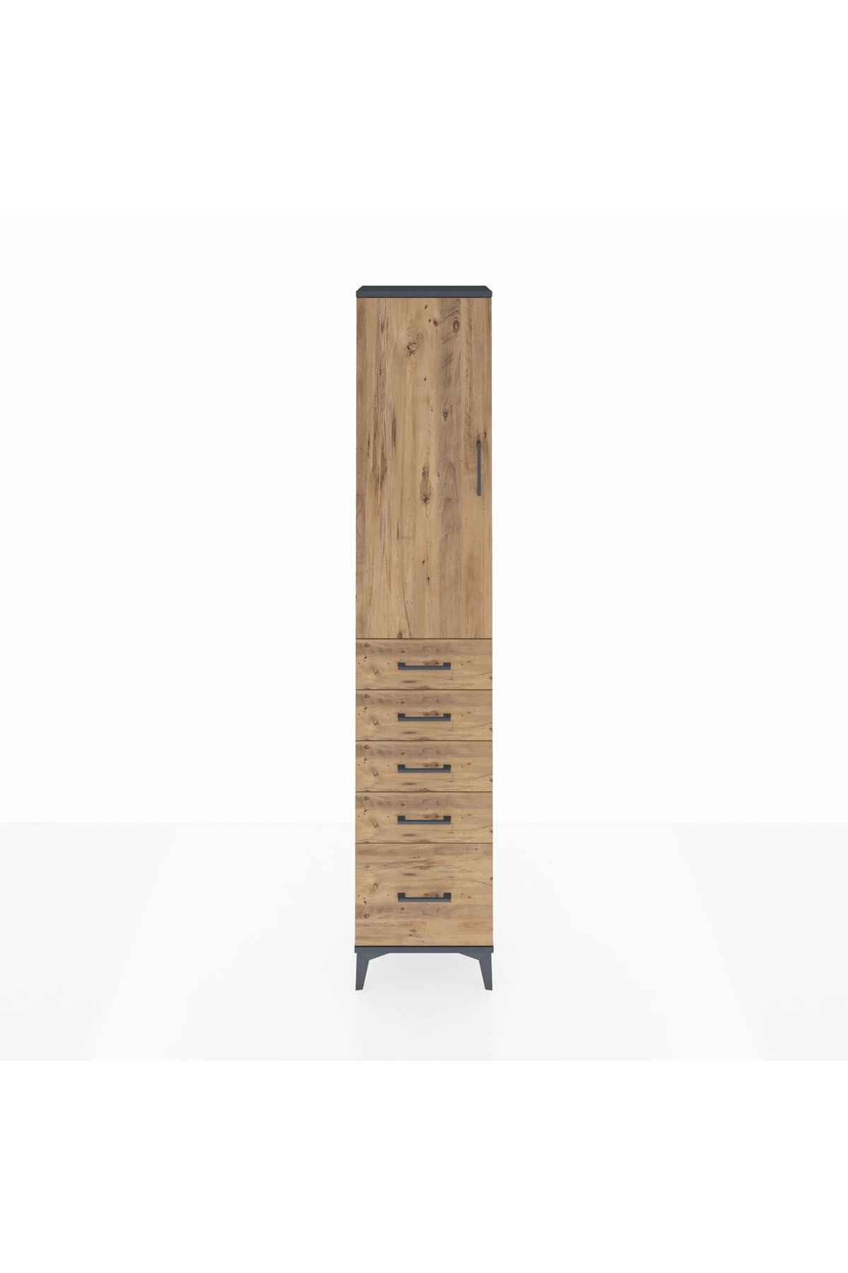 Arges Dolap 2 Raflı 5 Çekmeceli Tek Askılı 44x30x221 Antrasit-Çam
