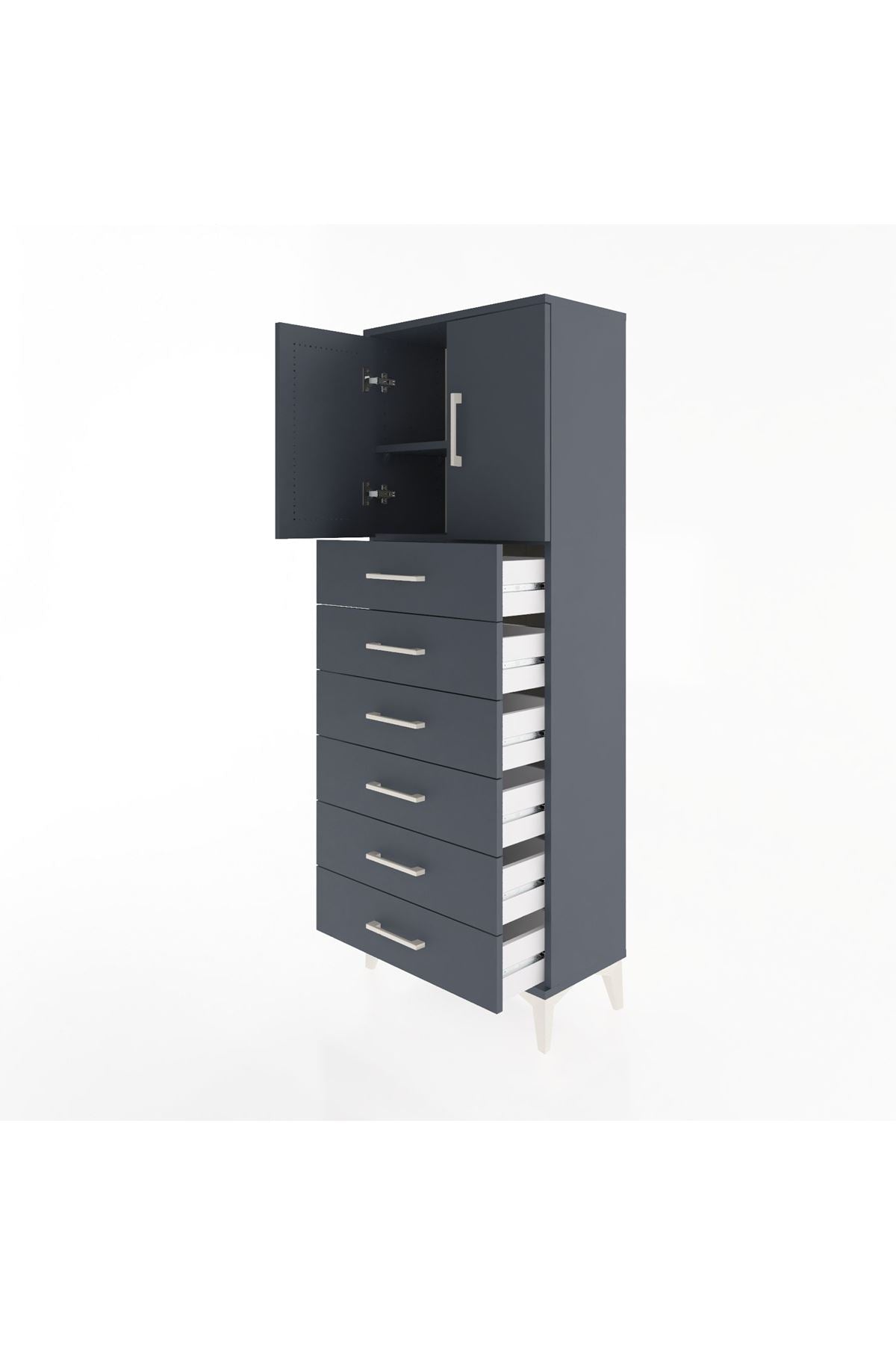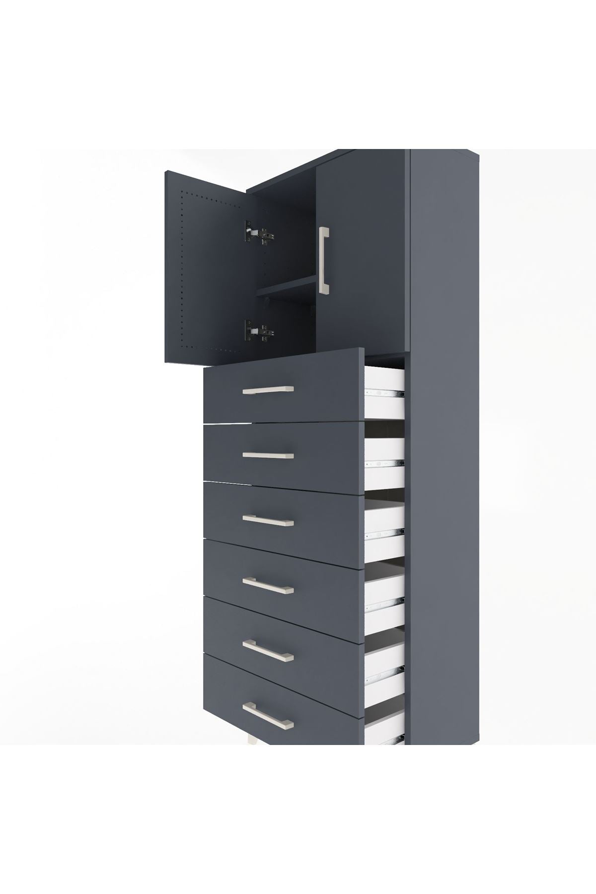 Arges Dolap 2 Raflı 6 Çekmeceli 2 Kapaklı 60x30x163 Antrasit-Antrasit
