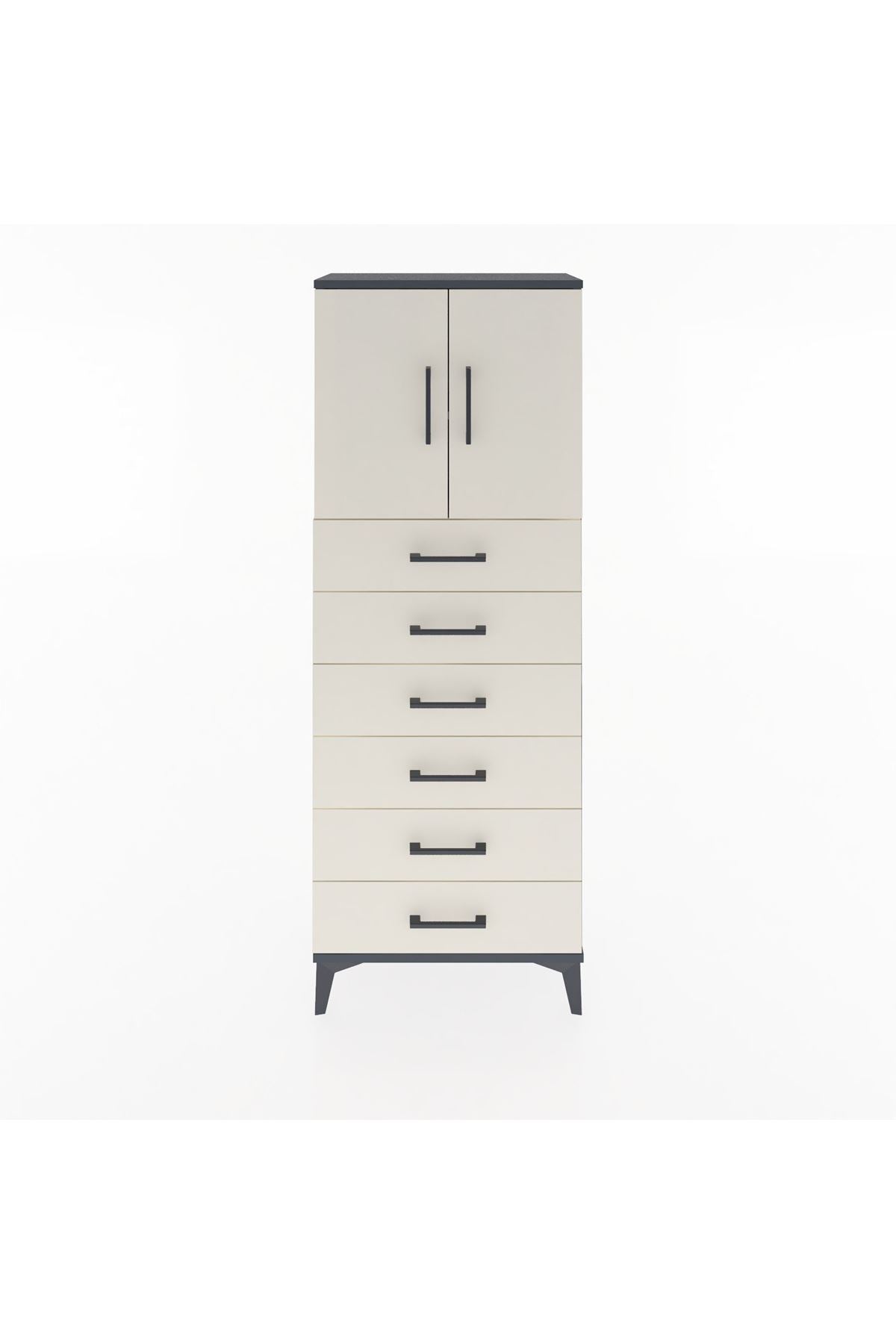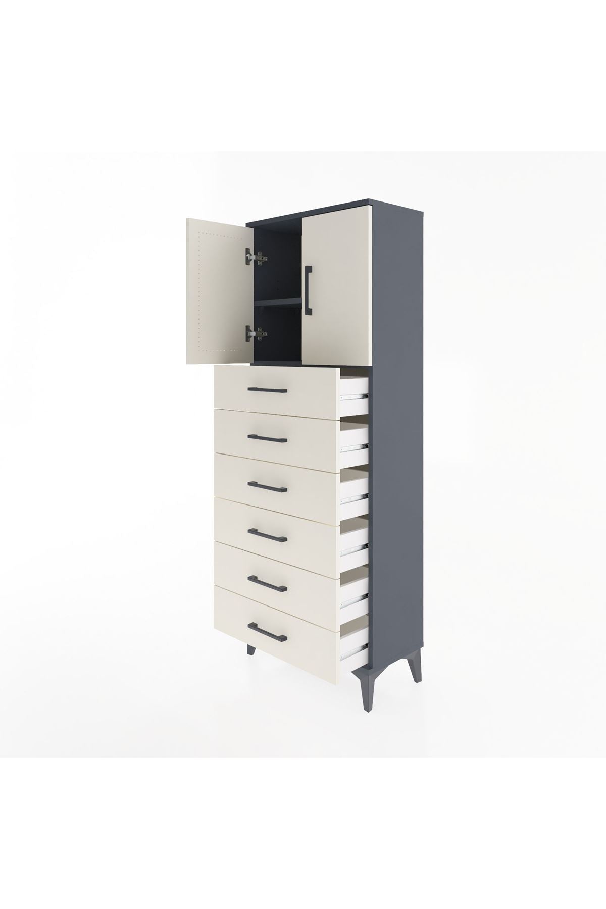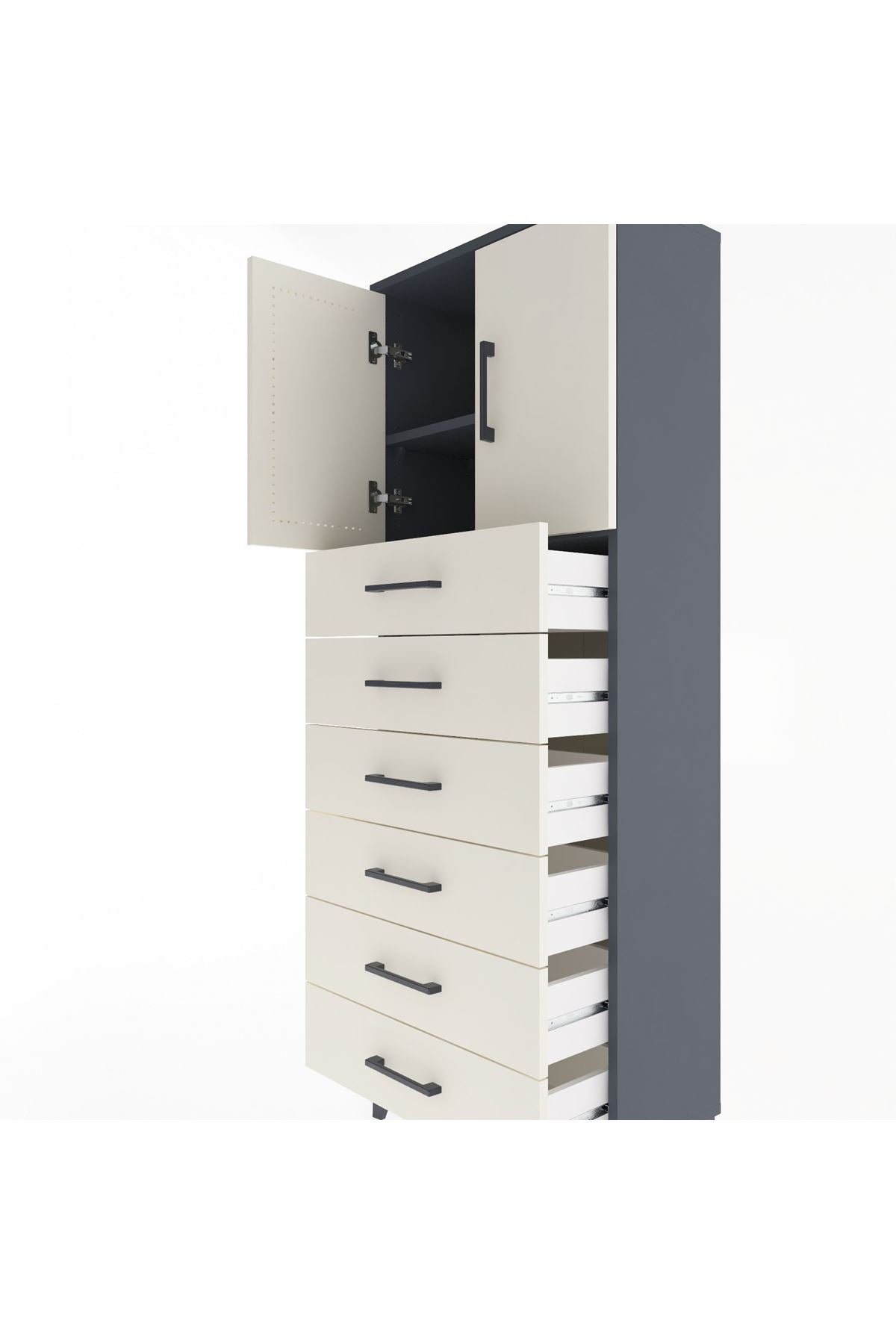 Arges Dolap 2 Raflı 6 Çekmeceli 2 Kapaklı 60x30x163 Antrasit-Aytaşı