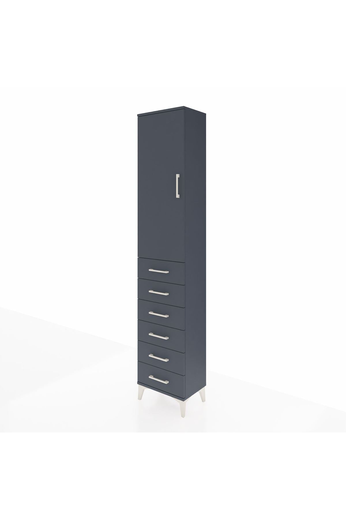 Arges Dolap 2 Raflı 6 Çekmeceli Tek Askılı 44x30x221 Antrasit-Antrasit