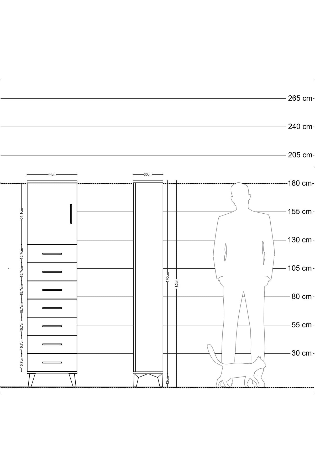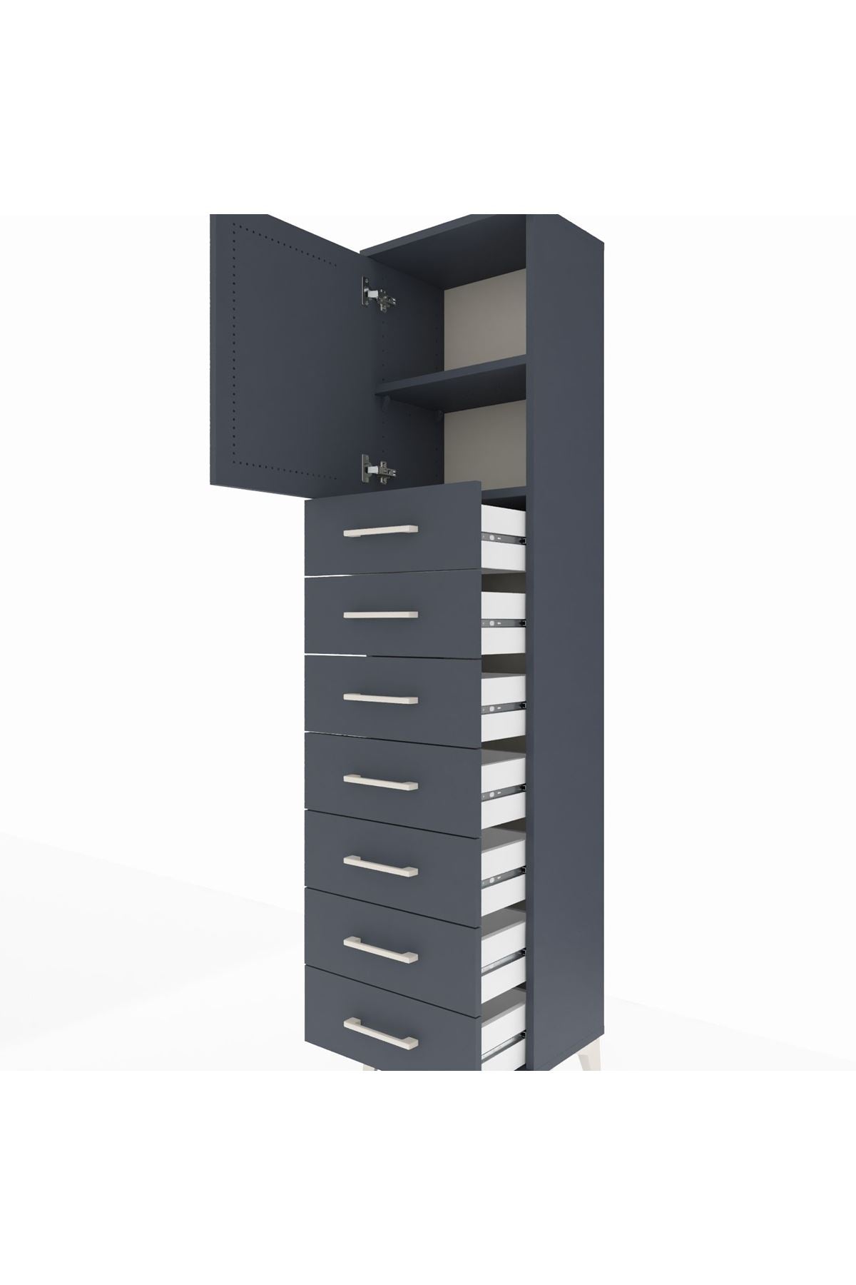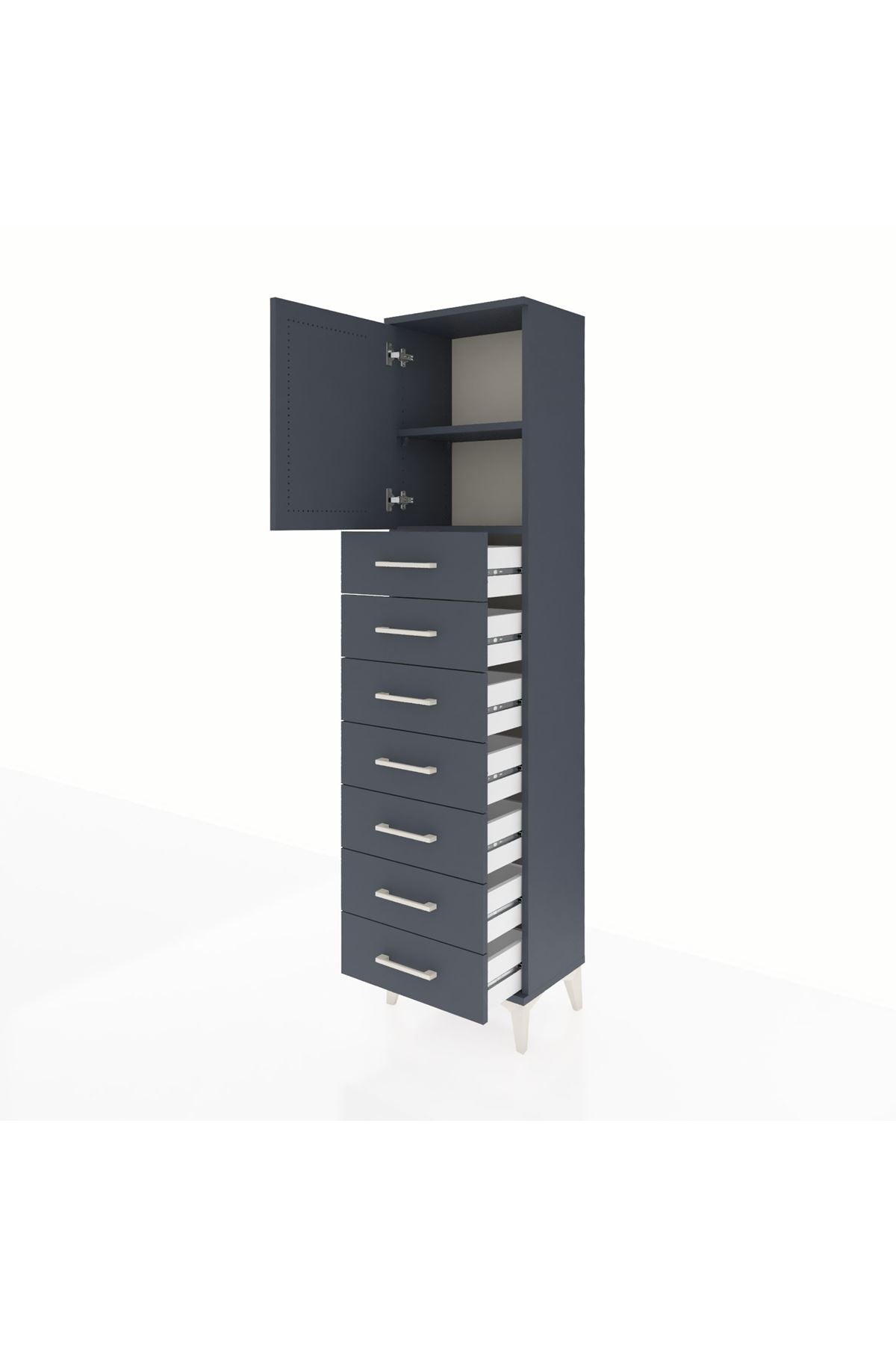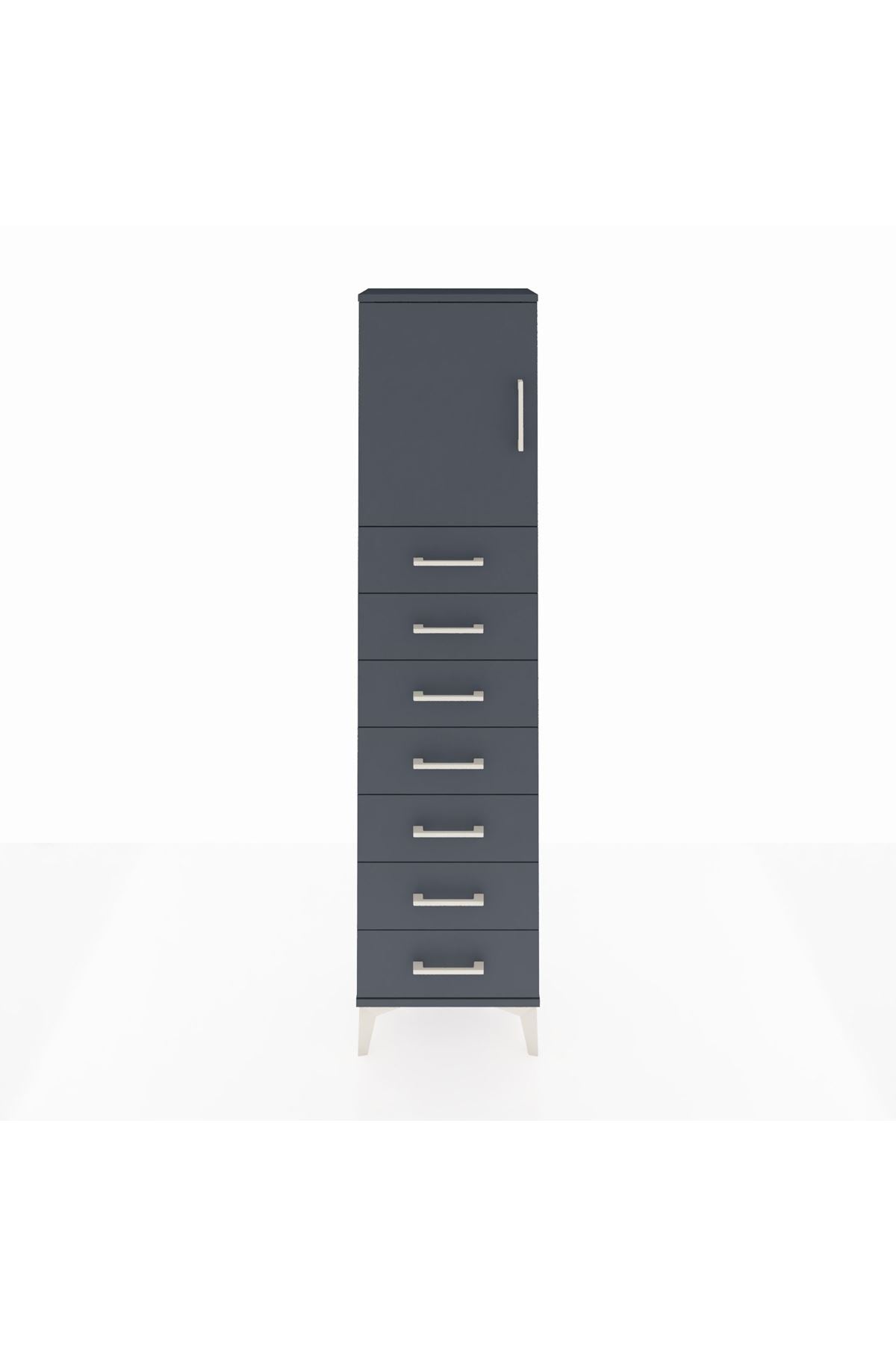 Arges Dolap 2 Raflı 7 Çekmeceli Tek Kapaklı 44x30x182 Antrasit-Antrasit