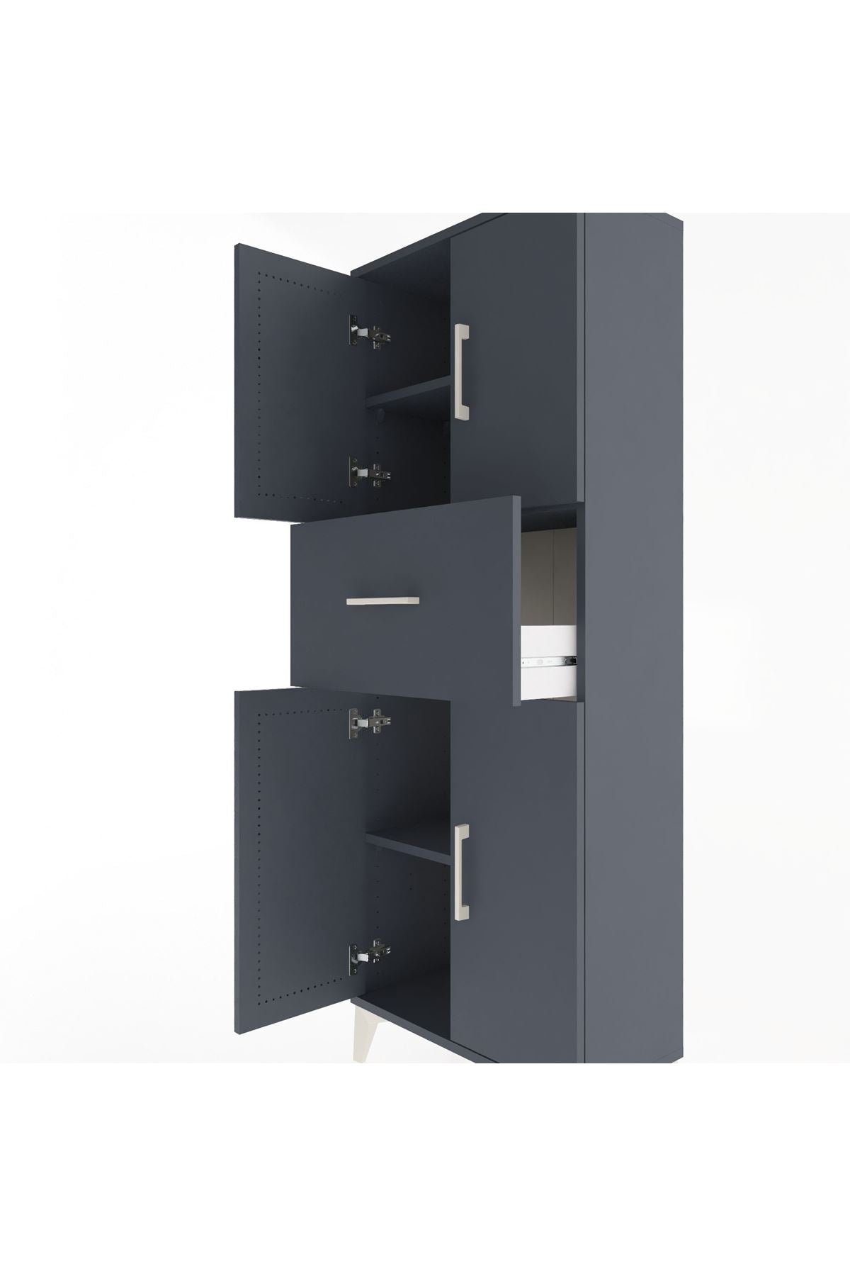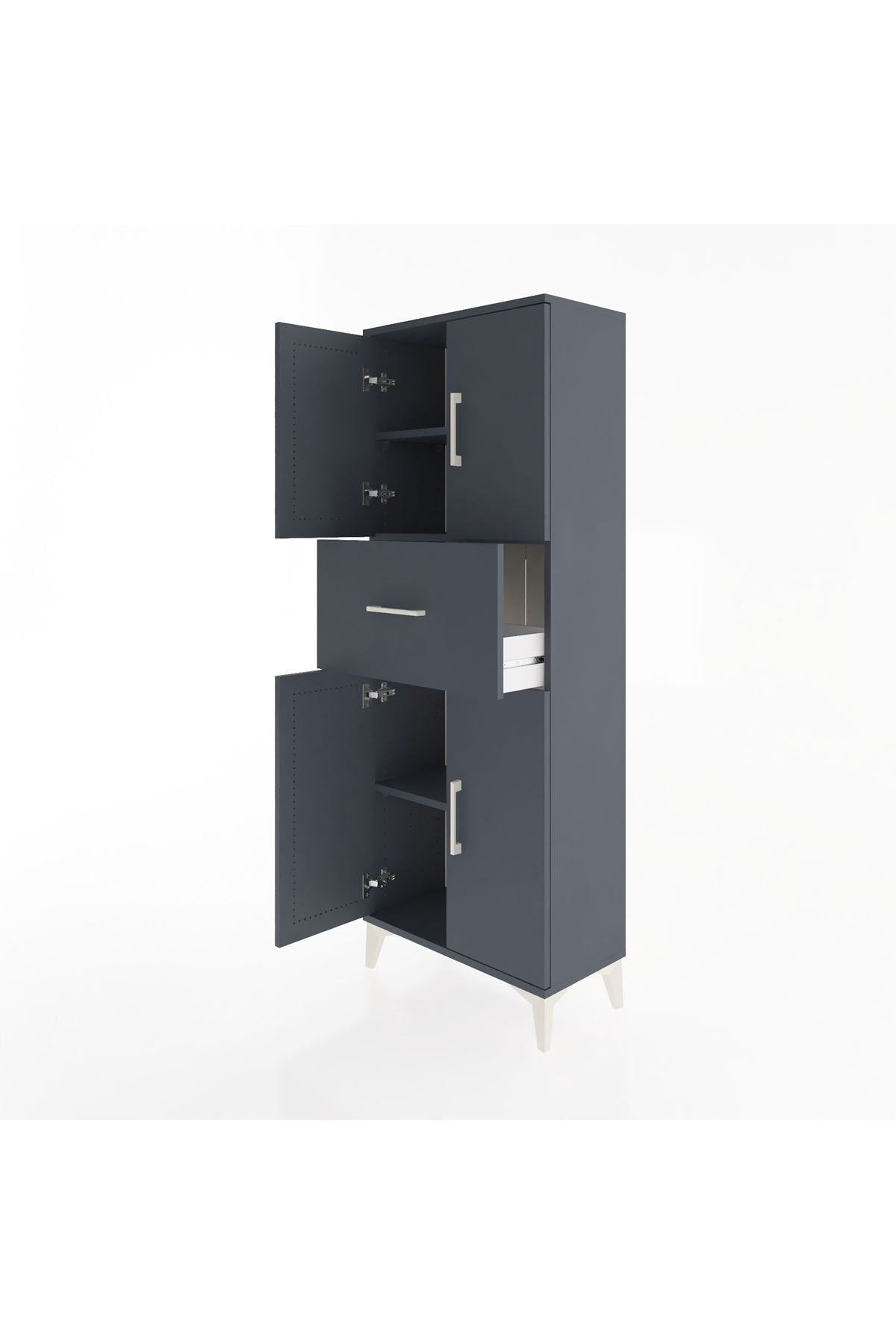 Arges Dolap 2 Raflı Tek Çekmeceli 4 Kapaklı 60x30x163 Antrasit-Antrasit