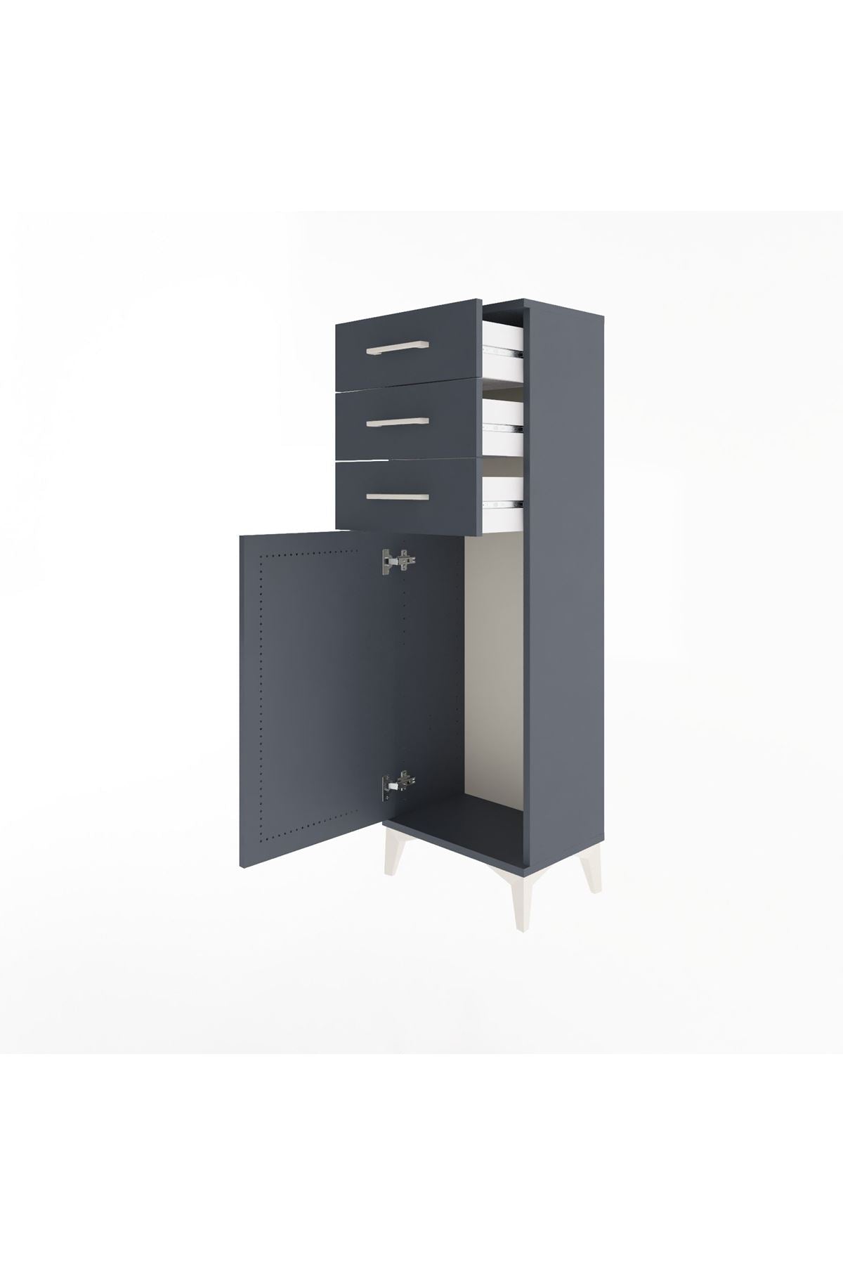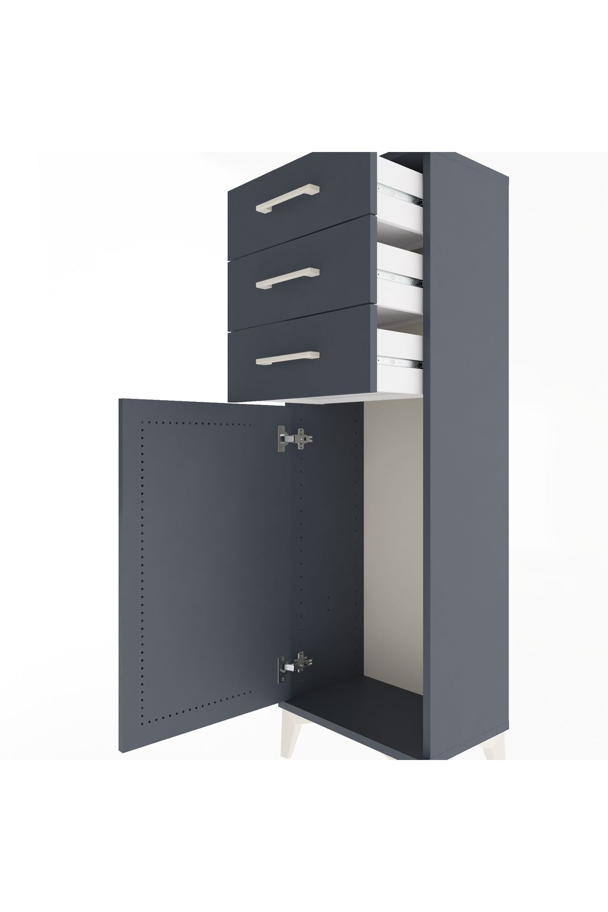 Arges Dolap 3 Çekmeceli Tek Kapaklı 44x30x134 Antrasit-Antrasit