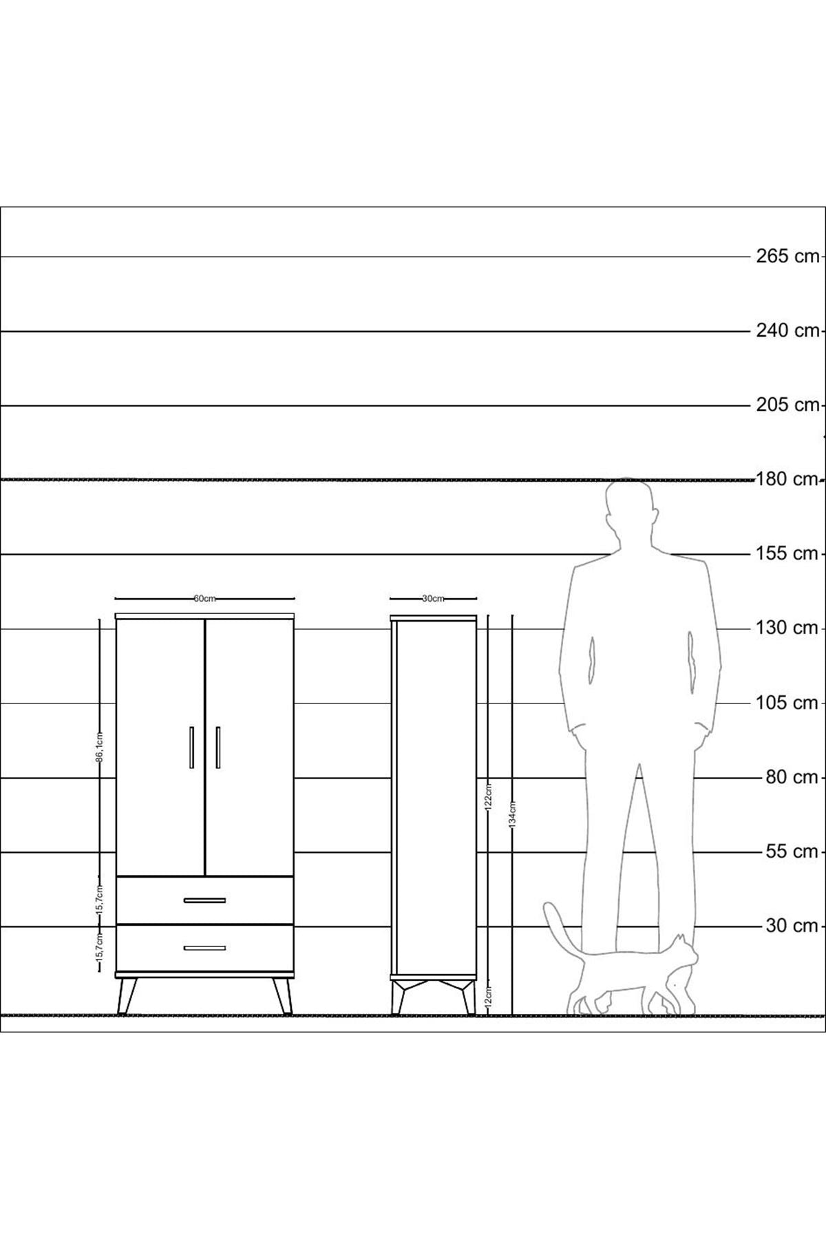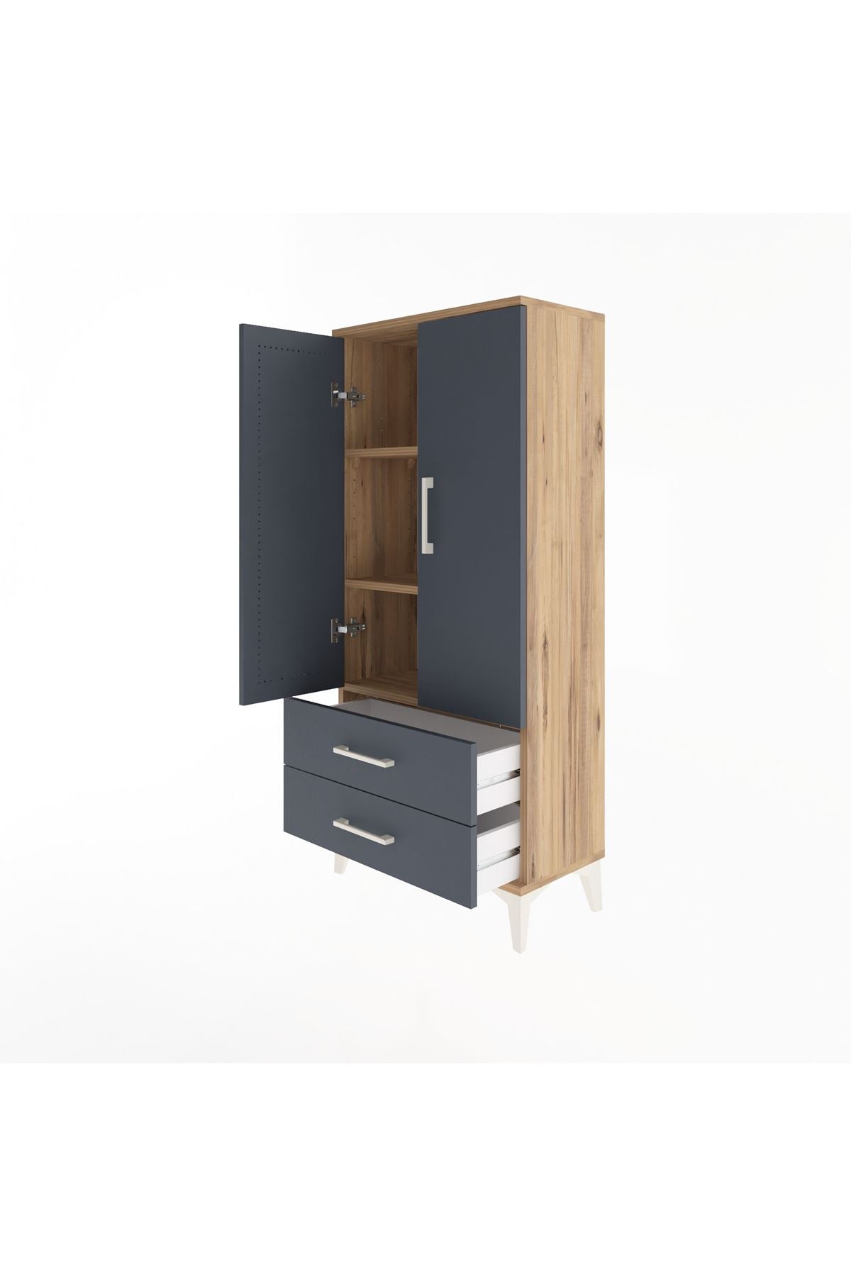 Arges Dolap 3 Raflı 2 Çekmeceli 2 Kapaklı 60x30x134 Çam-Antrasit