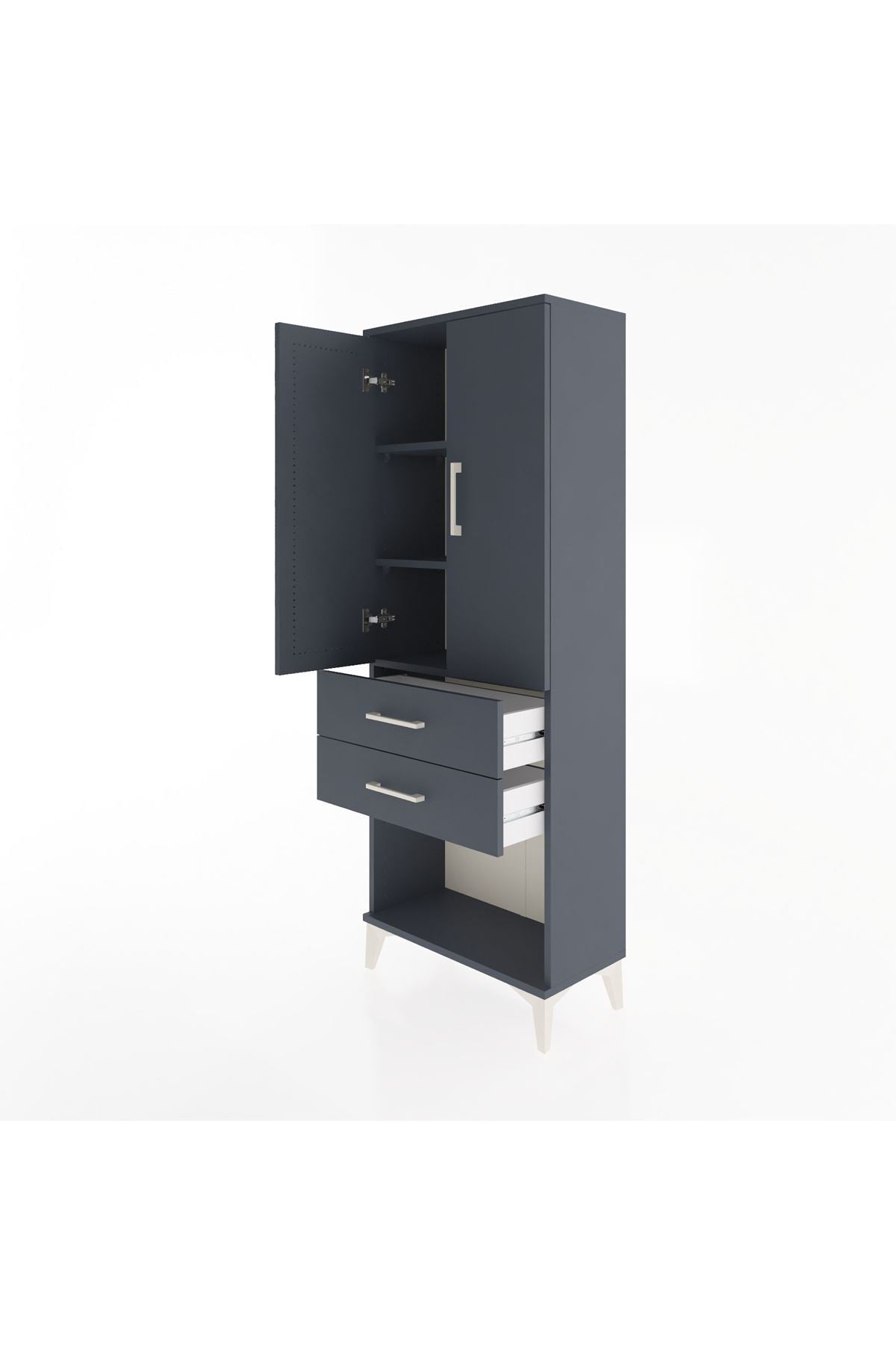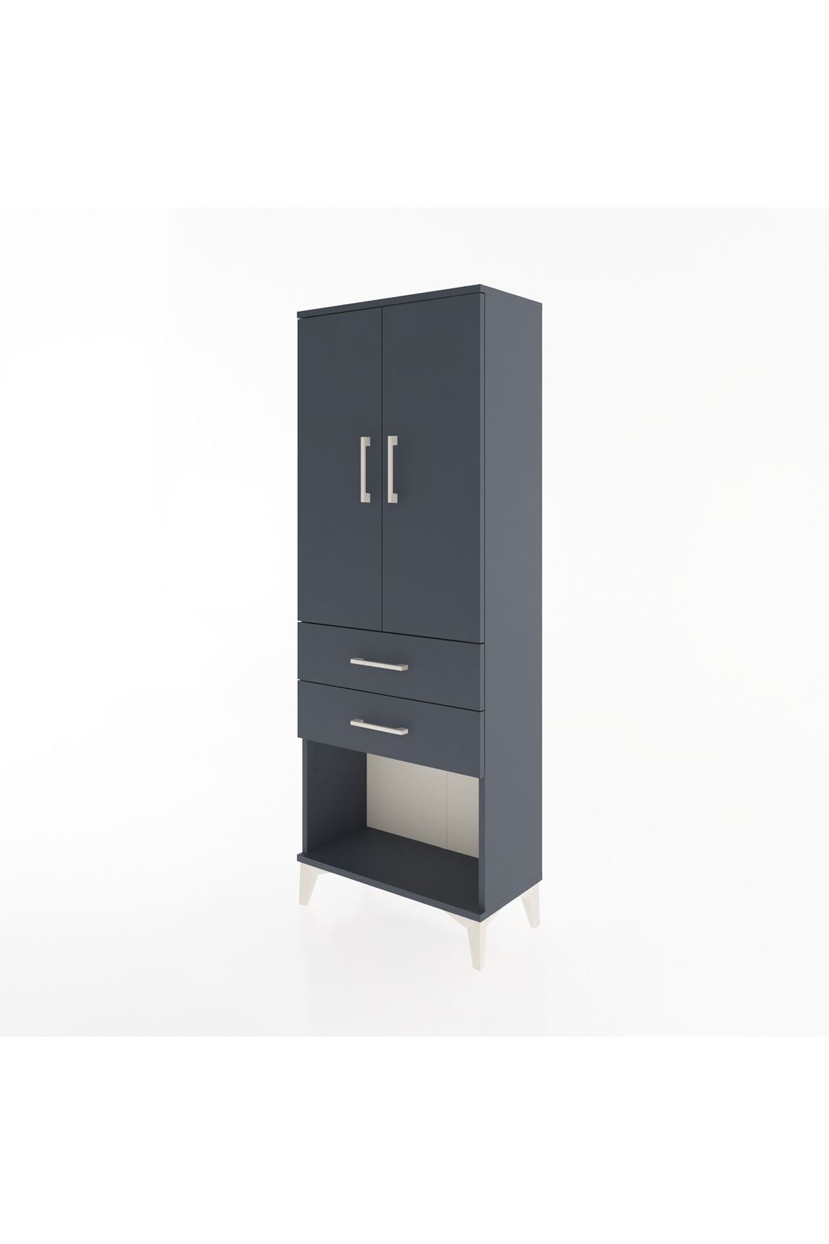 Arges Dolap 3 Raflı 2 Çekmeceli 2 Kapaklı 60x30x163 Antrasit-Antrasit