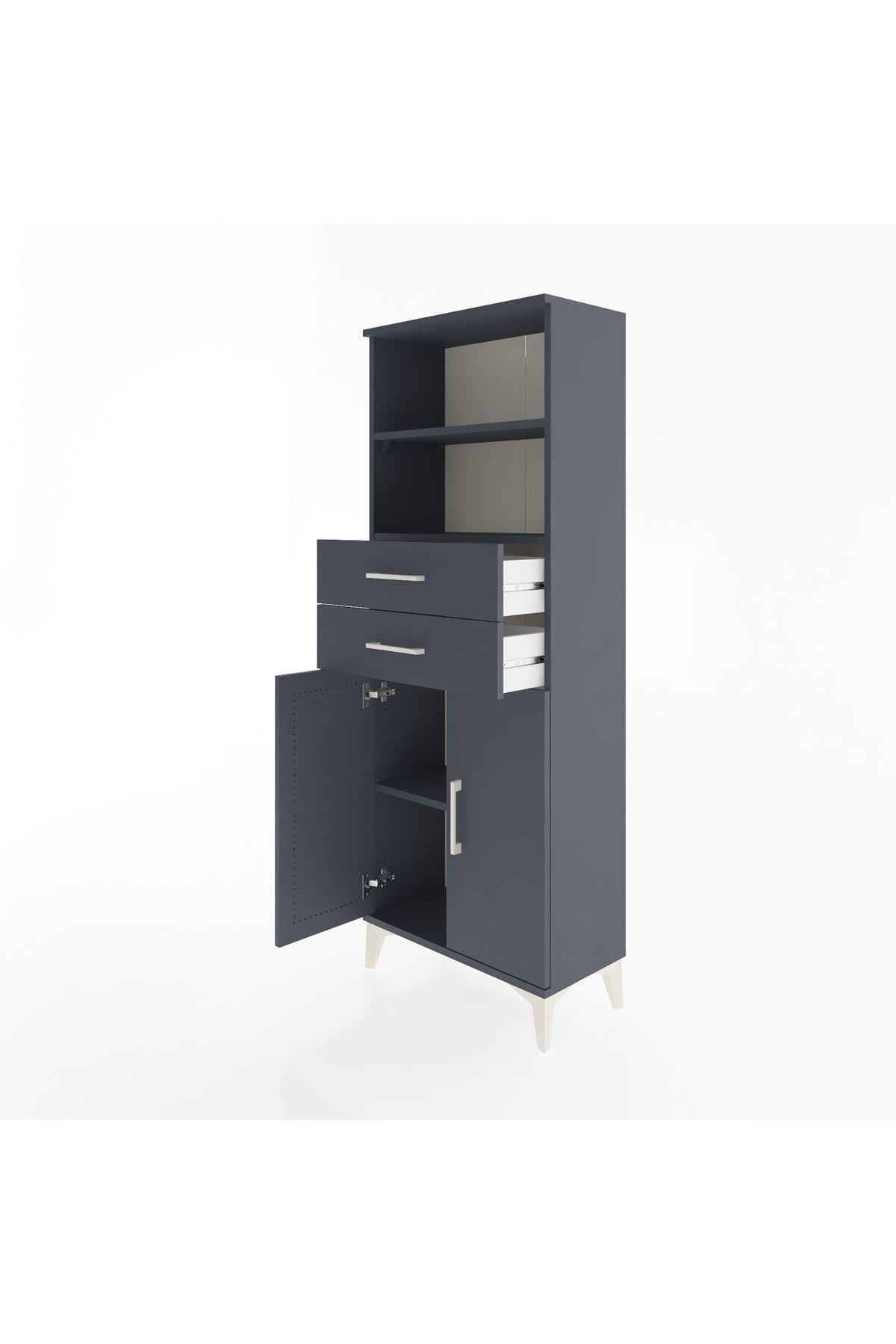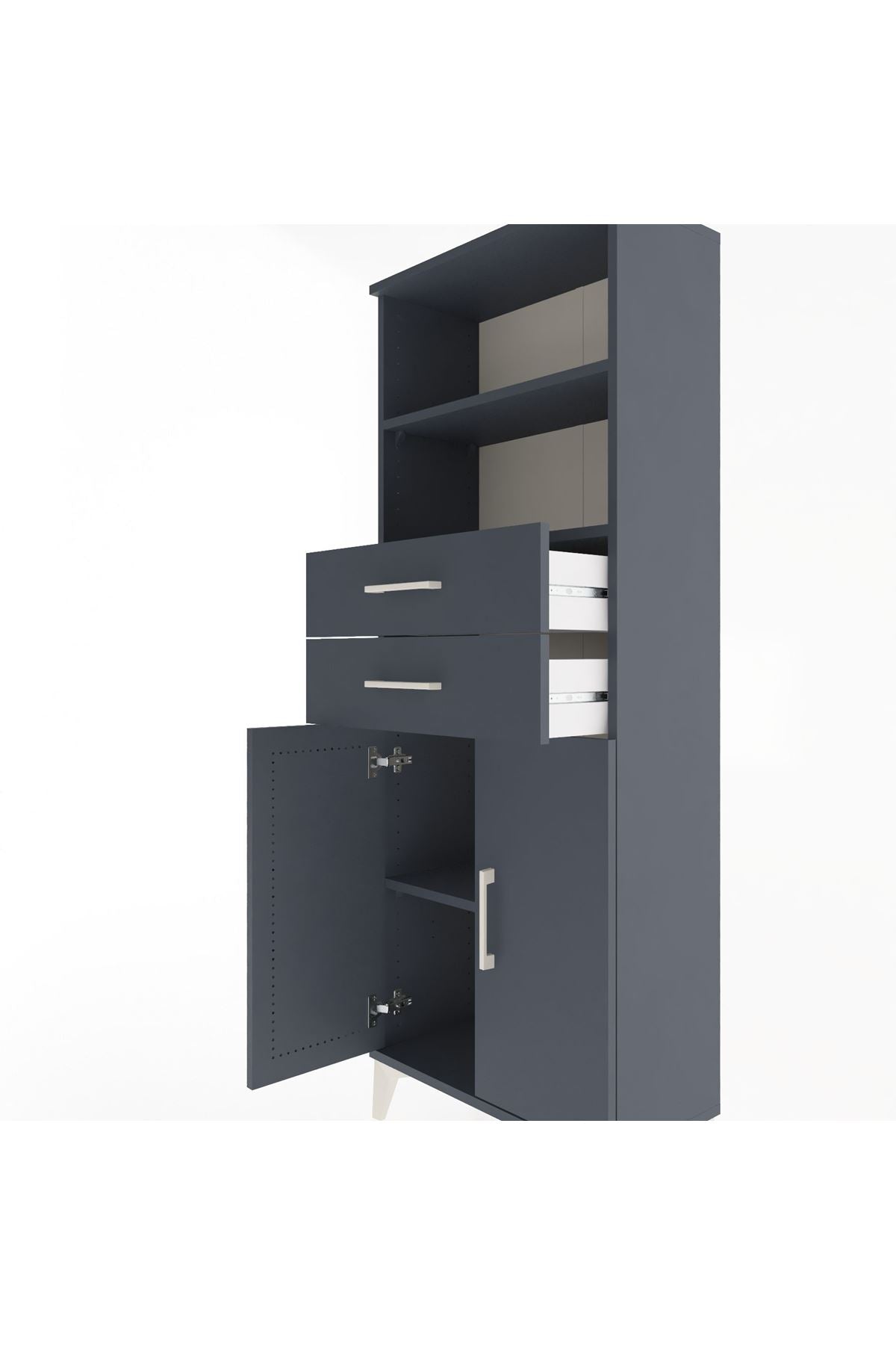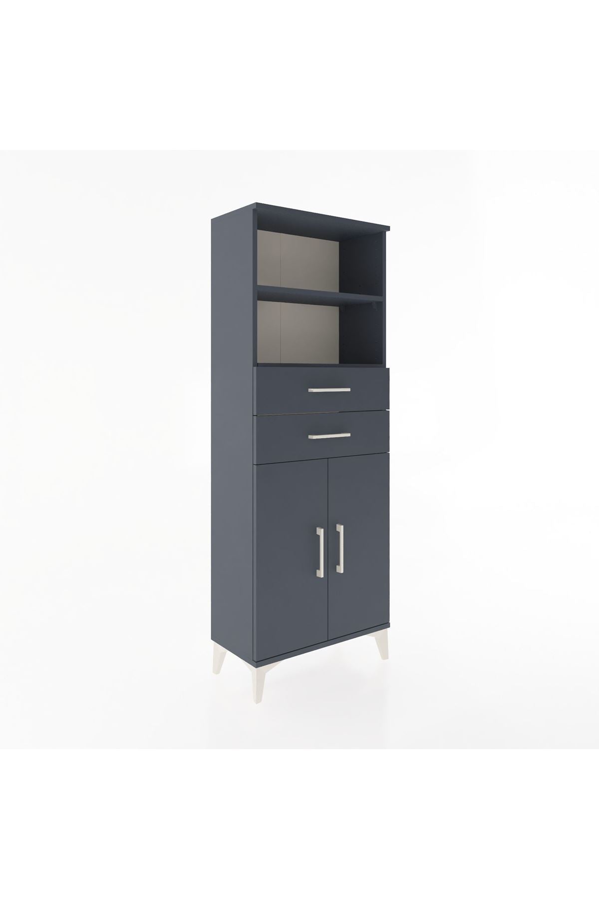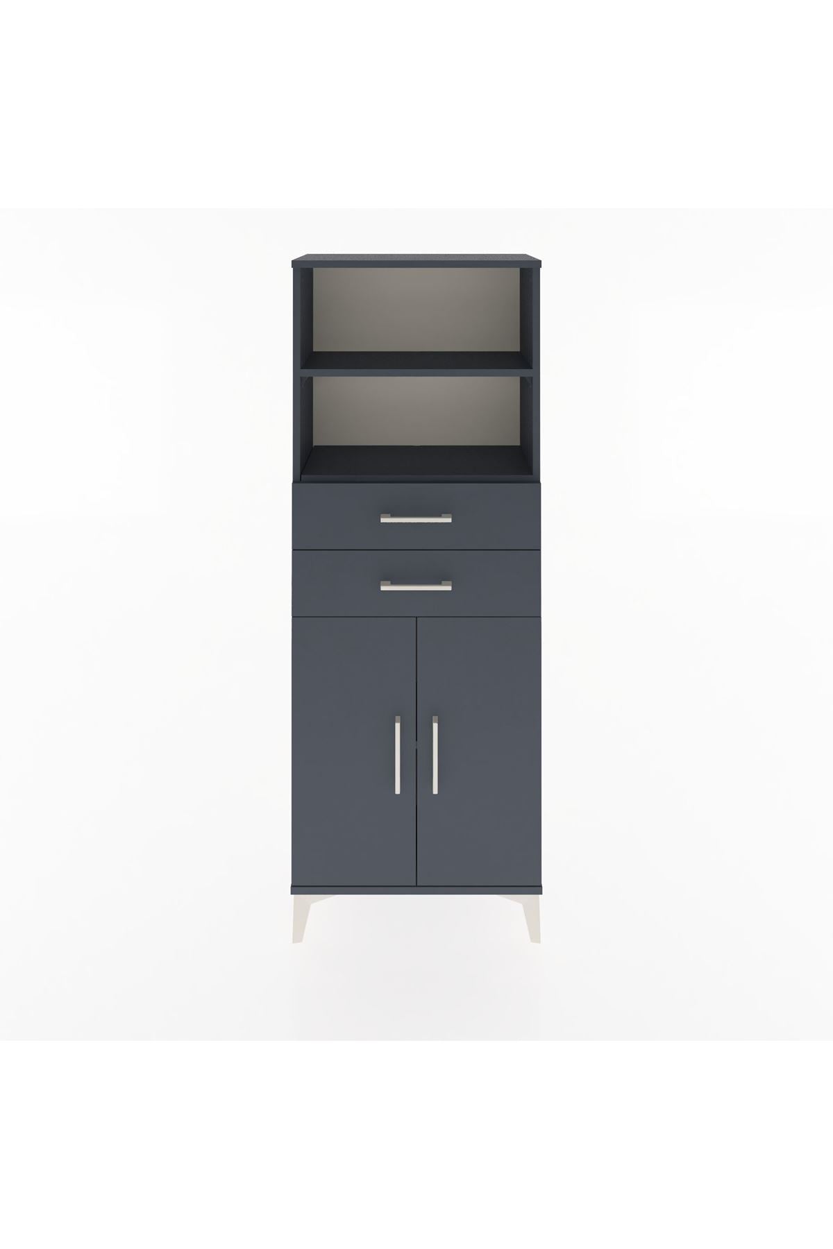 Arges Dolap 3 Raflı 2 Çekmeceli 2 Kapaklı 60x30x163 Antrasit-Antrasit