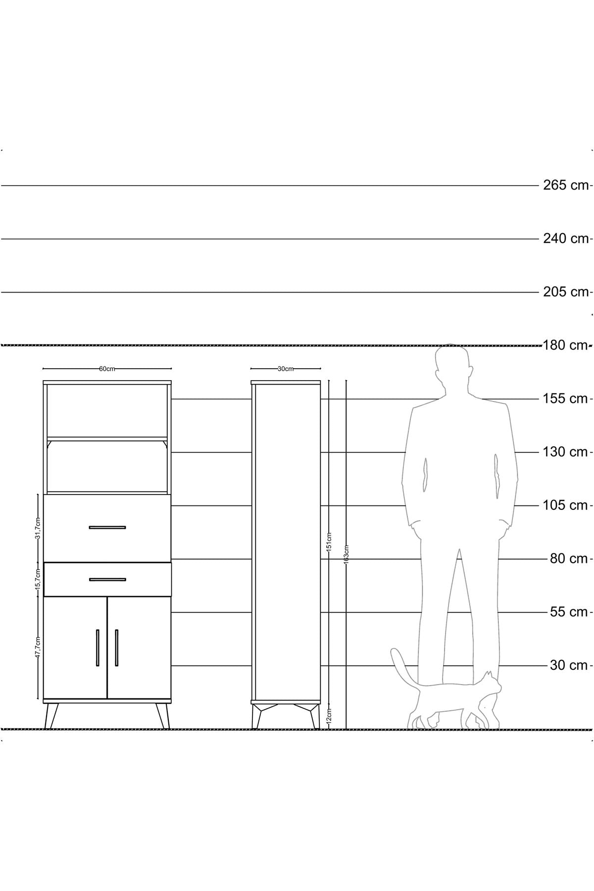 Arges Dolap 3 Raflı 2 Çekmeceli 2 Kapaklı 60x30x163 Antrasit-Aytaşı