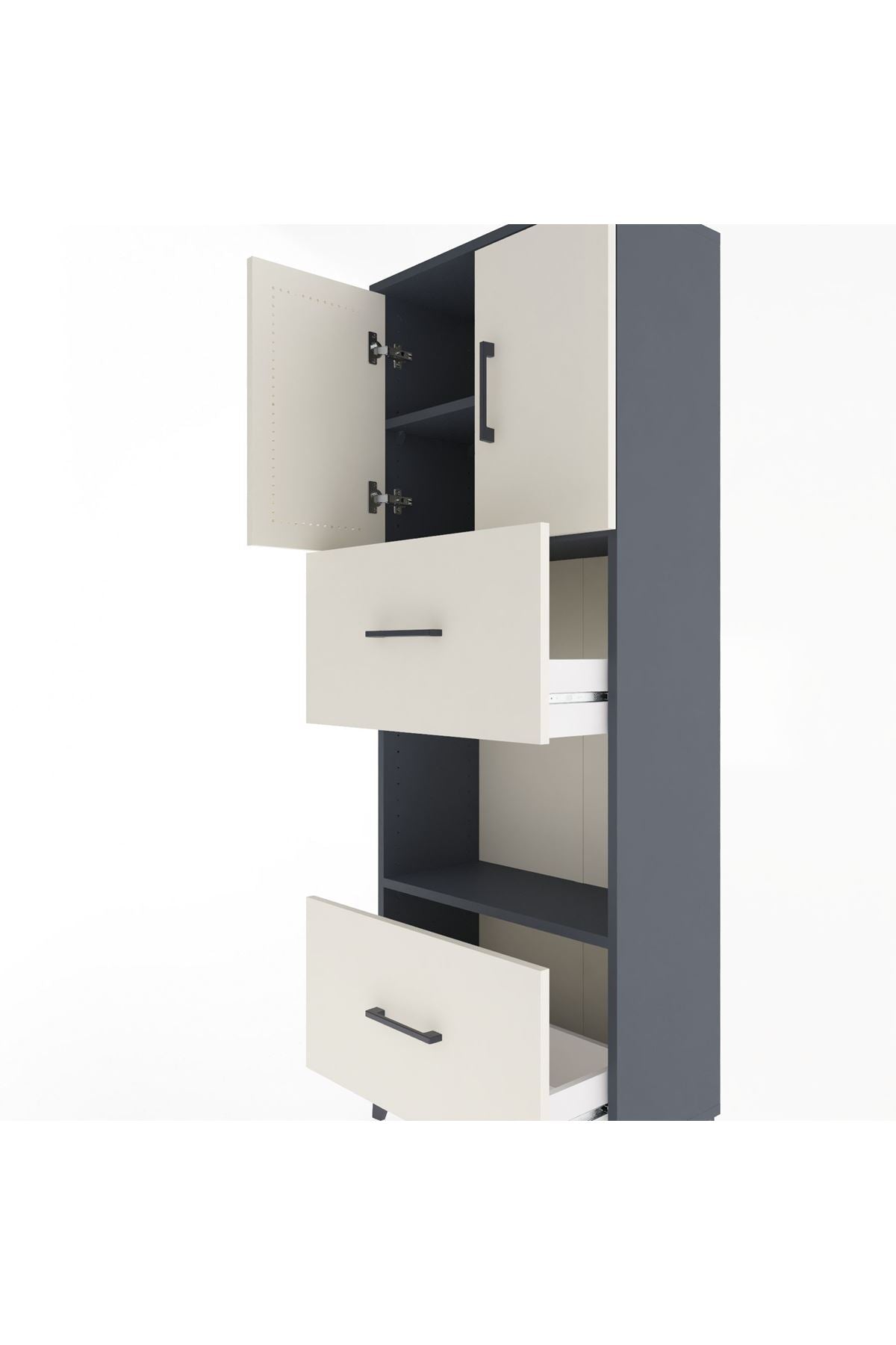 Arges Dolap 3 Raflı 2 Çekmeceli 2 Kapaklı 60x30x163 Antrasit-Aytaşı