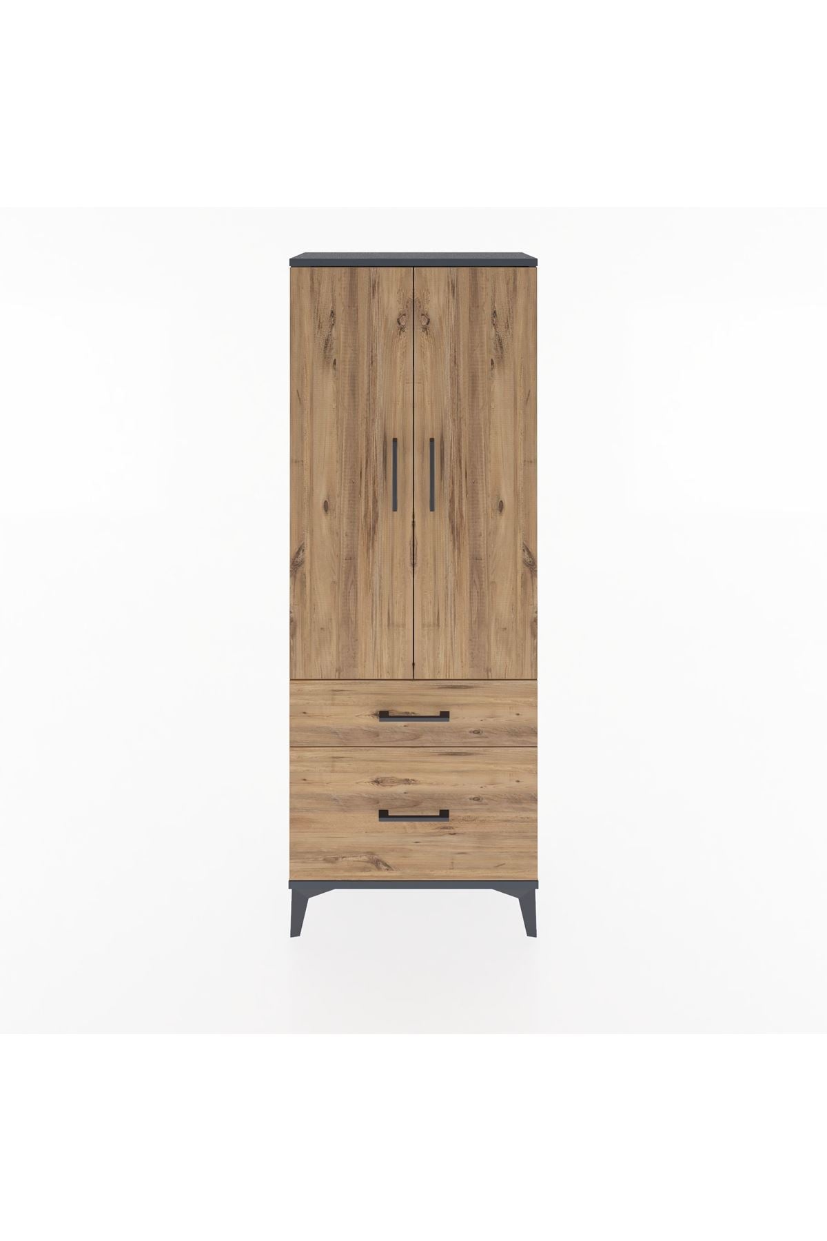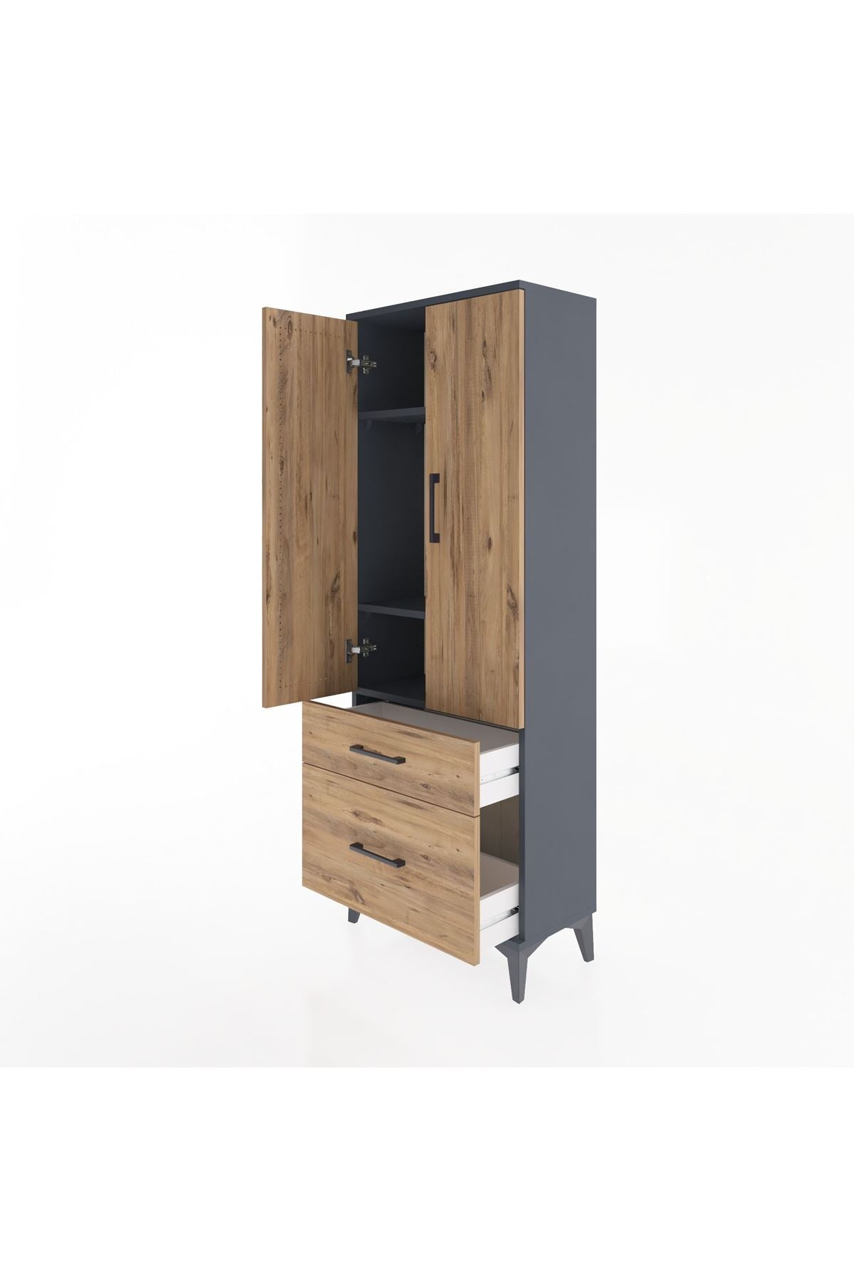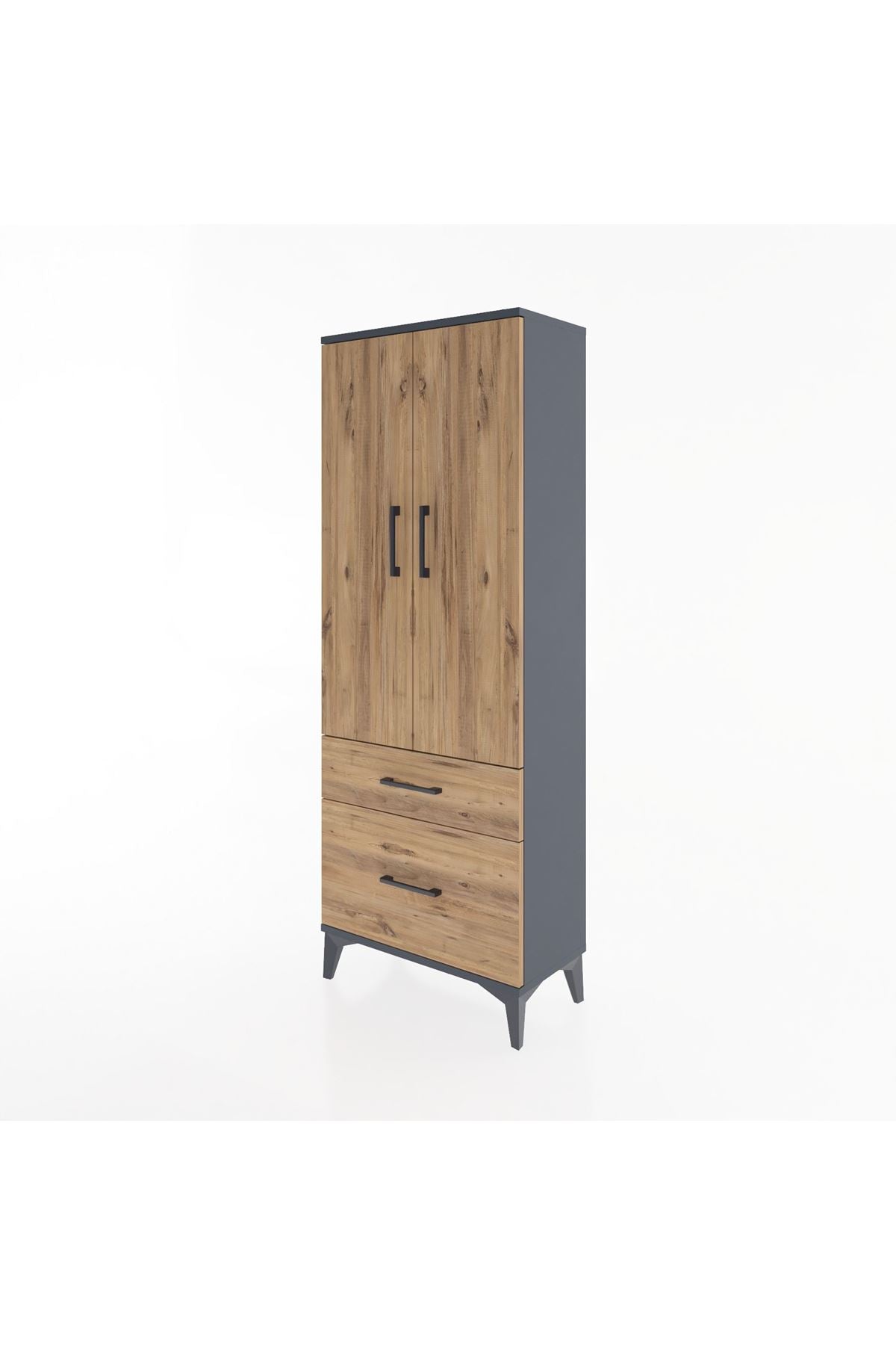 Arges Dolap 3 Raflı 2 Çekmeceli 2 Kapaklı 60x30x163 Antrasit-Çam