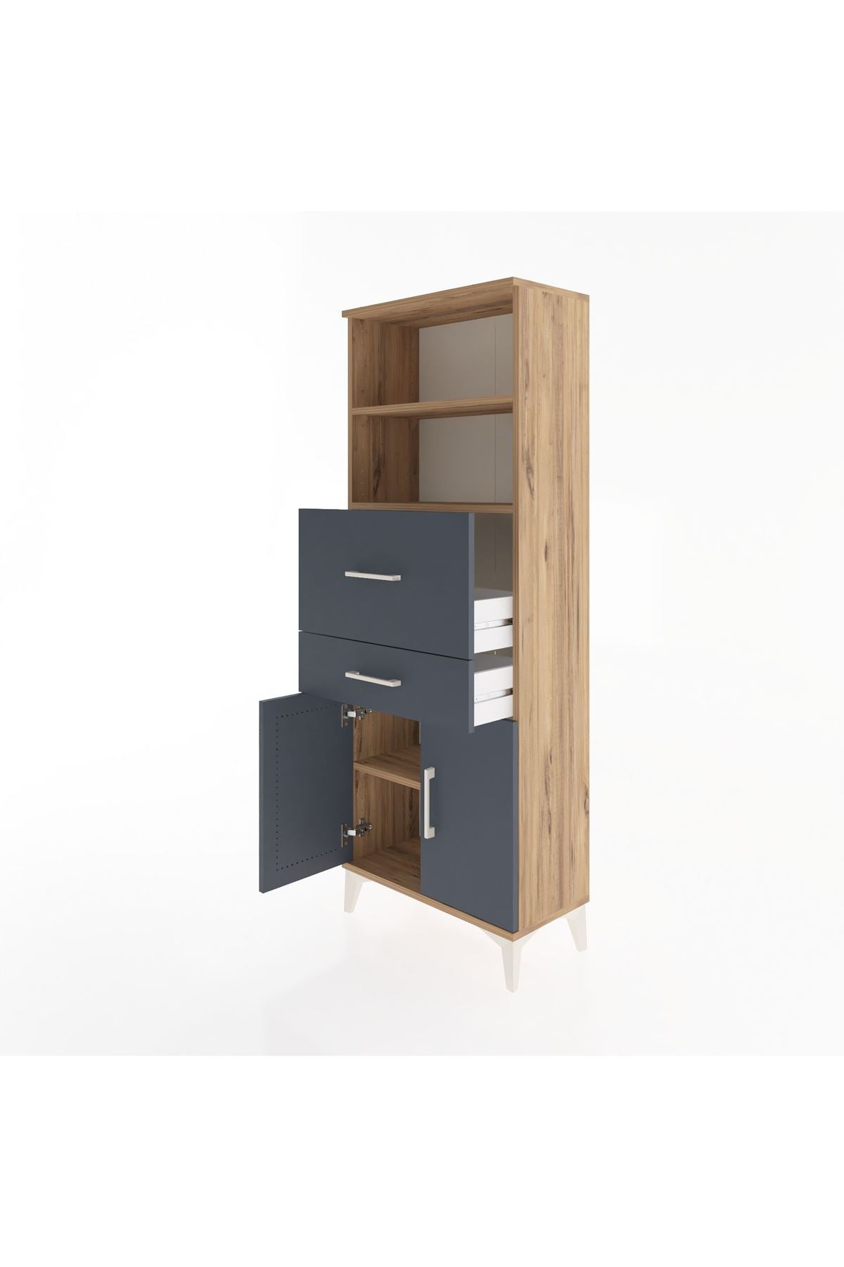 Arges Dolap 3 Raflı 2 Çekmeceli 2 Kapaklı 60x30x163 Çam-Antrasit