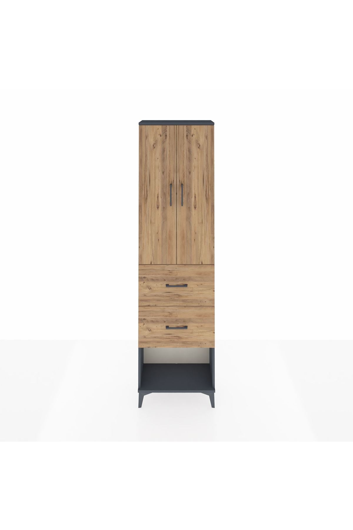 Arges Dolap 3 Raflı 2 Çekmeceli 2 Kapaklı 60x30x221 Antrasit-Çam