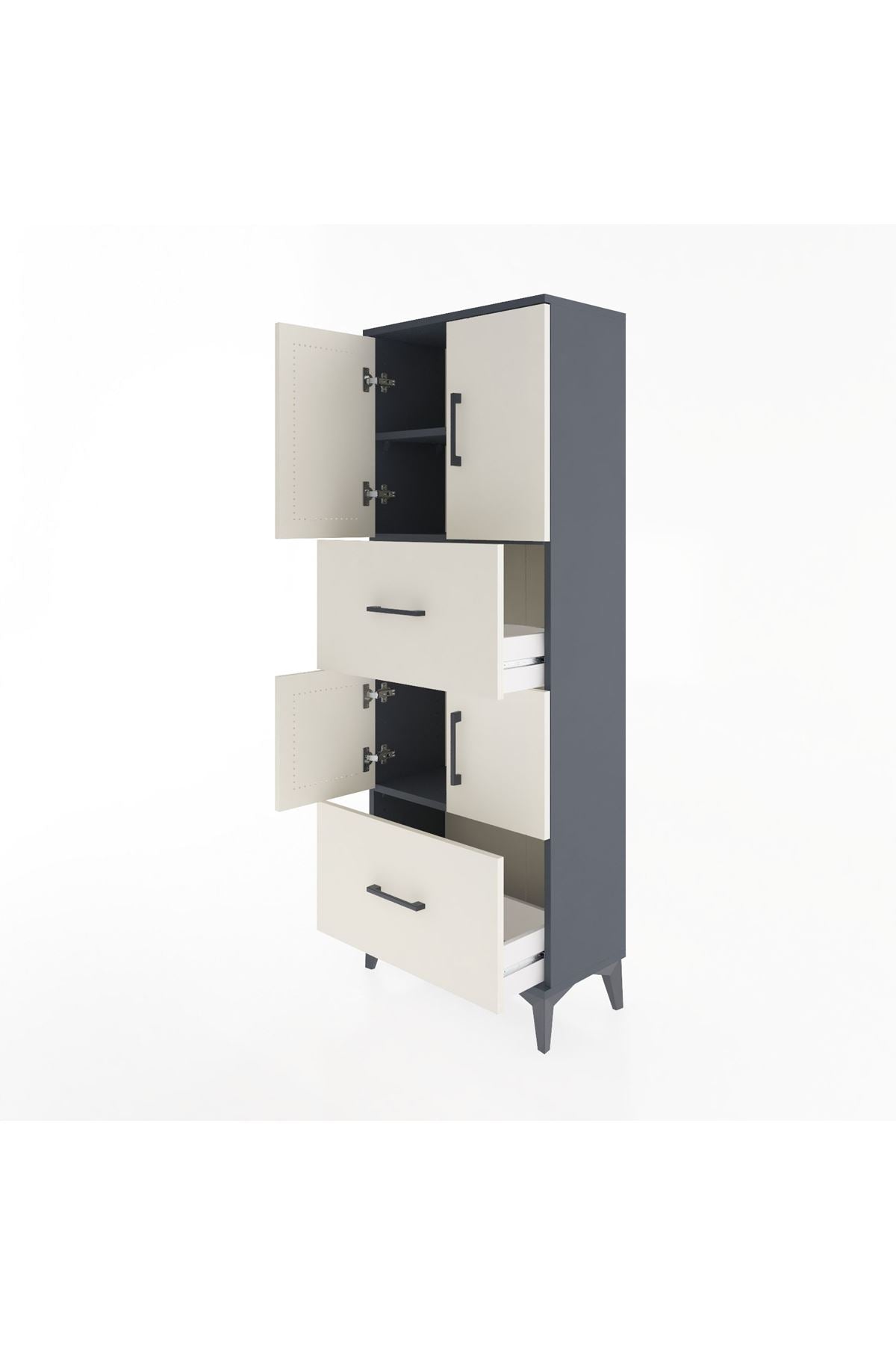 Arges Dolap 3 Raflı 2 Çekmeceli 4 Kapaklı 60x30x163 Antrasit-Aytaşı