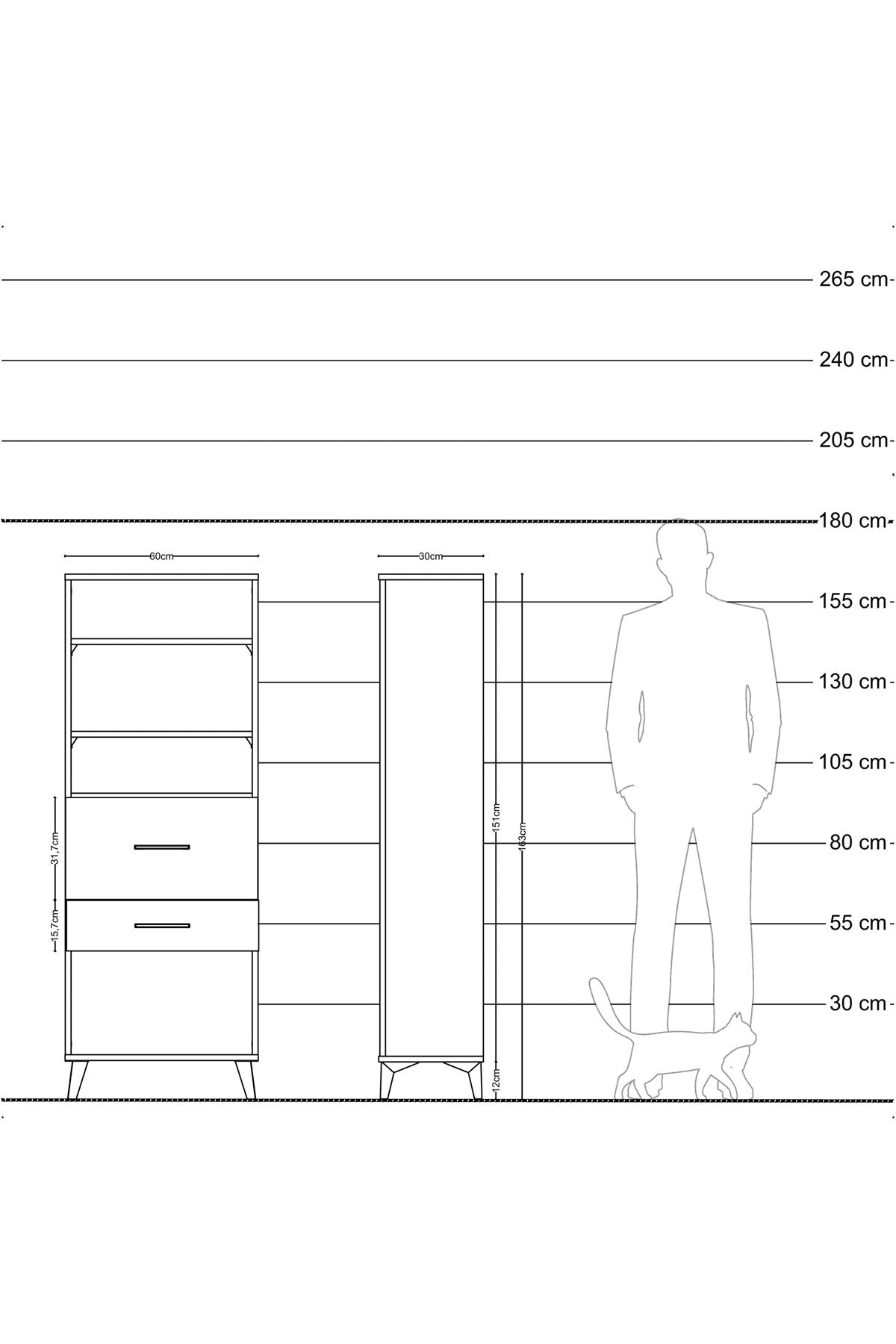 Arges Dolap 3 Raflı 2 Çekmeceli 60x30x163 Çam-Antrasit
