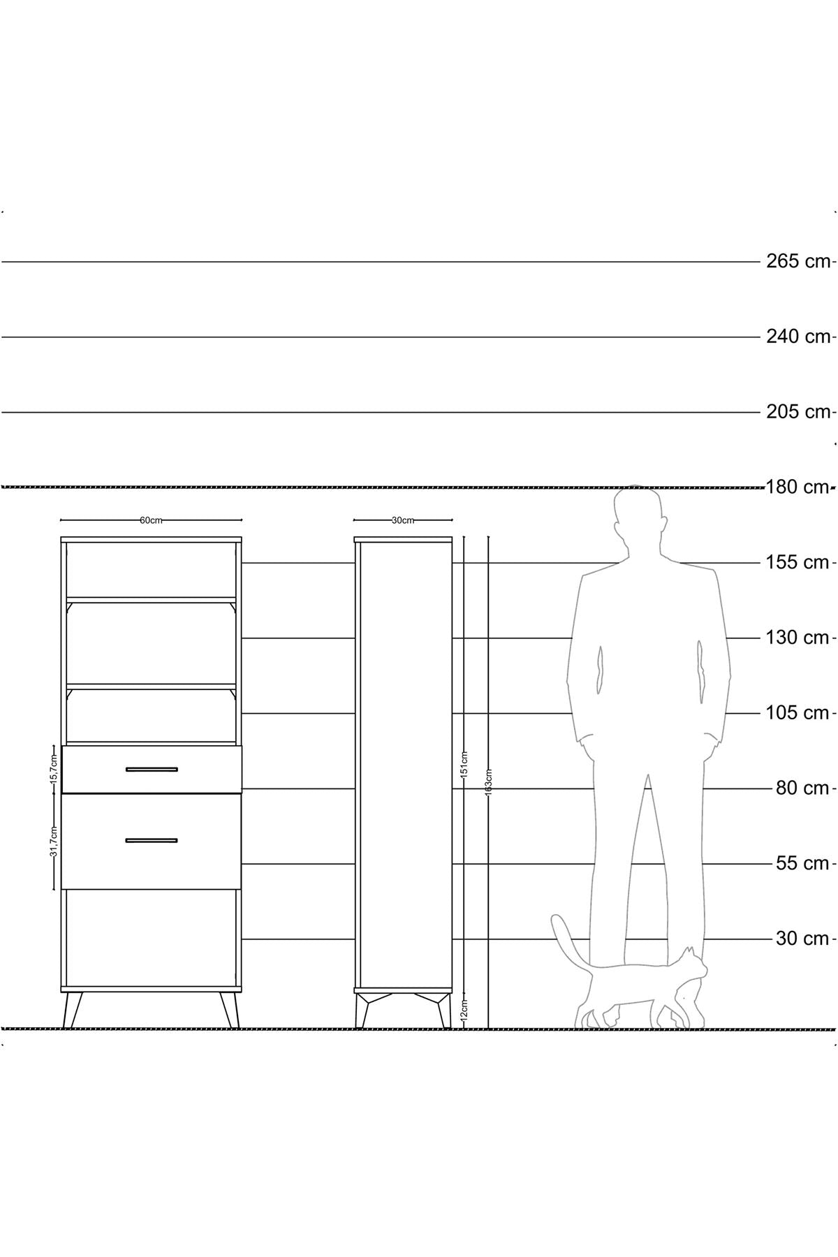 Arges Dolap 3 Raflı 2 Çekmeceli 60x30x163 Çam-Aytaşı