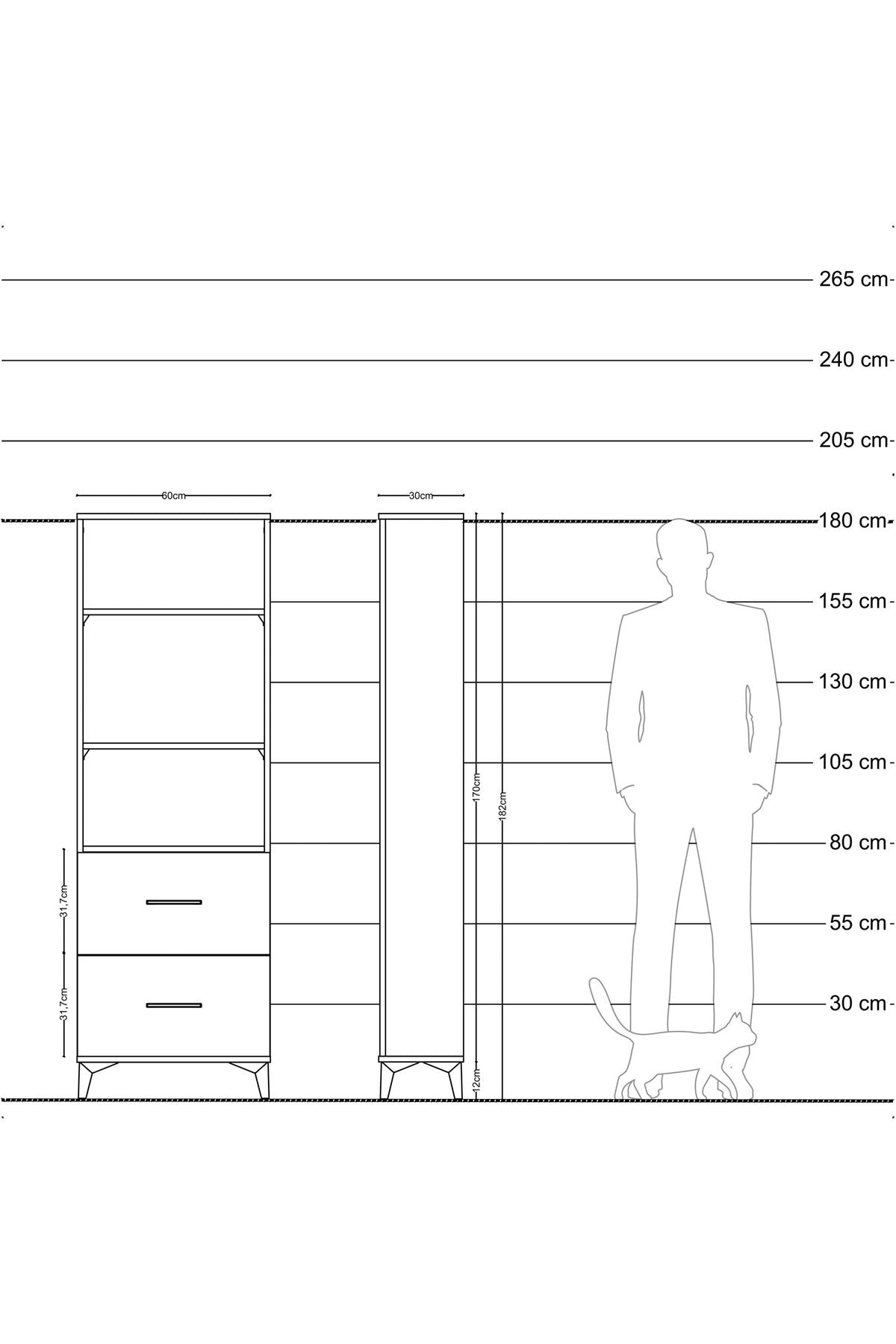 Arges Dolap 3 Raflı 2 Çekmeceli 60x30x182 Antrasit-Antrasit