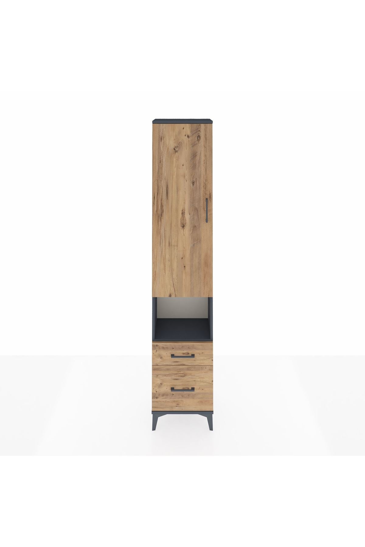 Arges Dolap 3 Raflı 2 Çekmeceli Tek Askılı 44x30x221 Antrasit-Çam