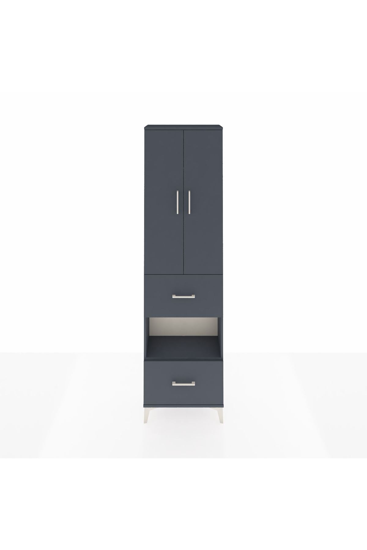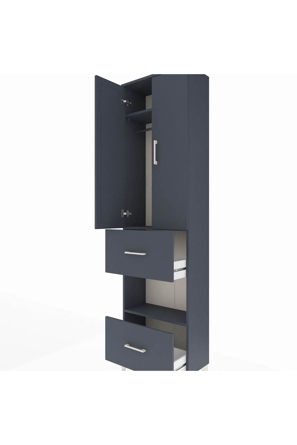 Arges Dolap 3 Raflı 2 Çekmeceli Tek Askılı 60x30x221 Antrasit-Antrasit