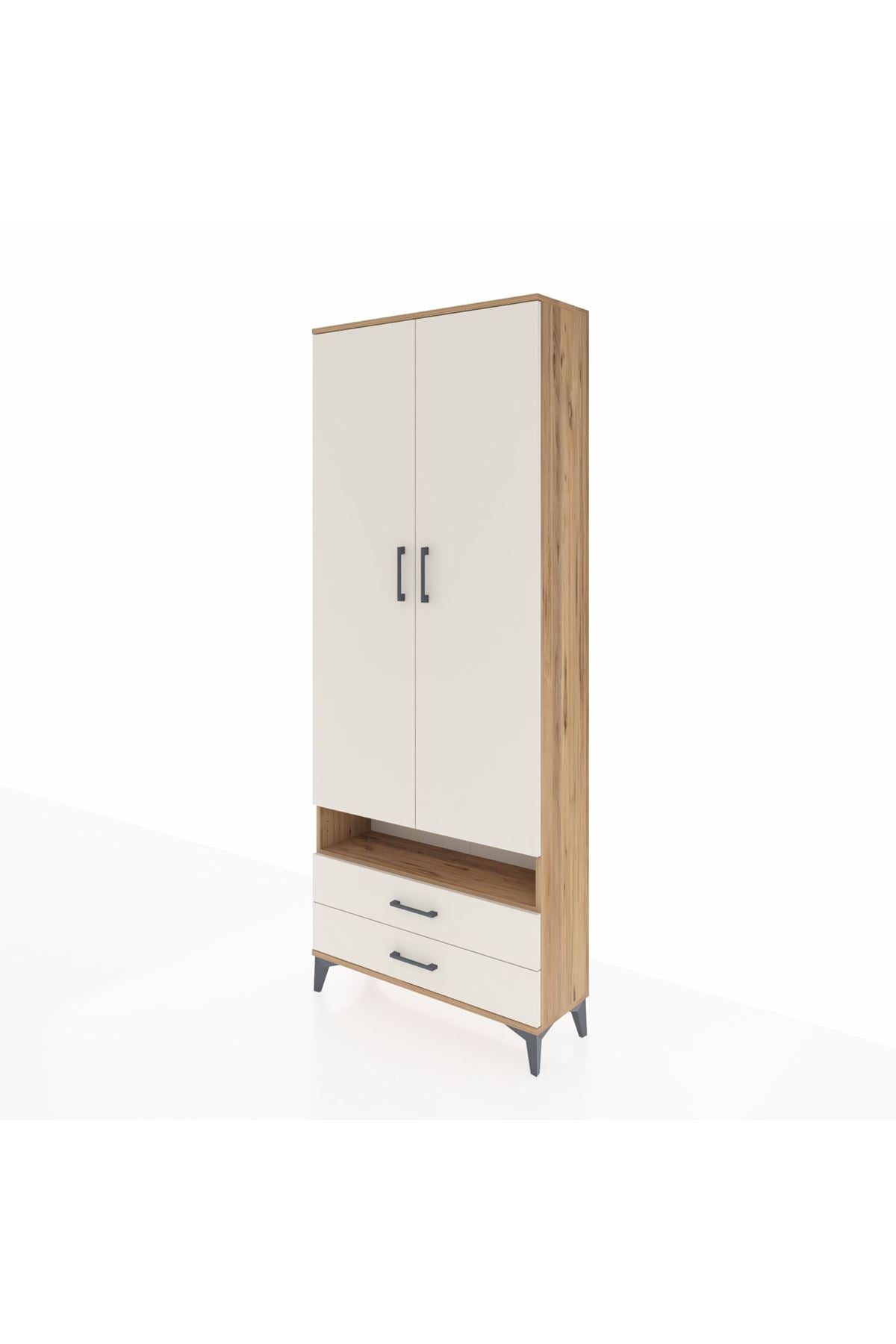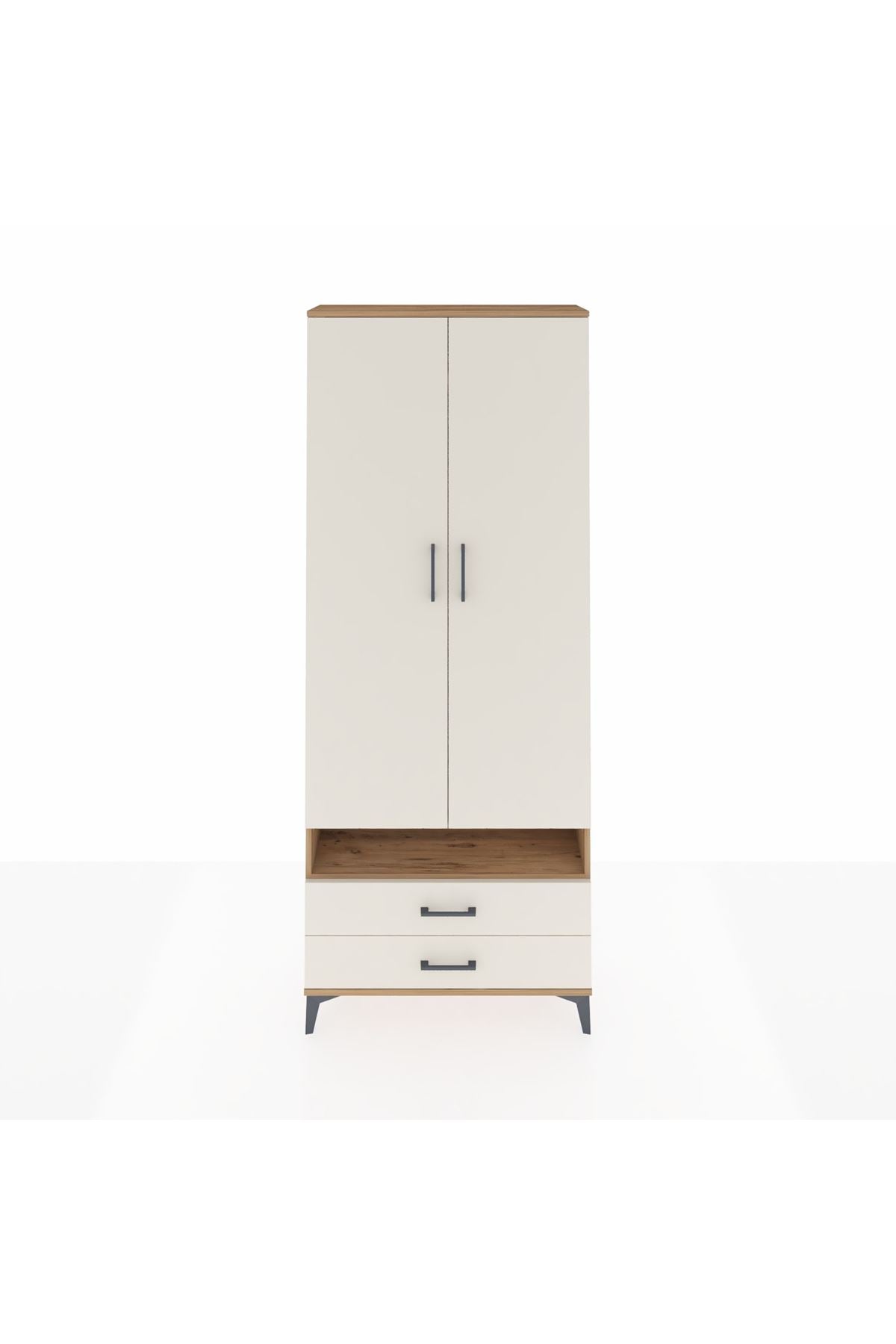 Arges Dolap 3 Raflı 2 Çekmeceli Tek Askılı 88x30x221 Çam-Aytaşı