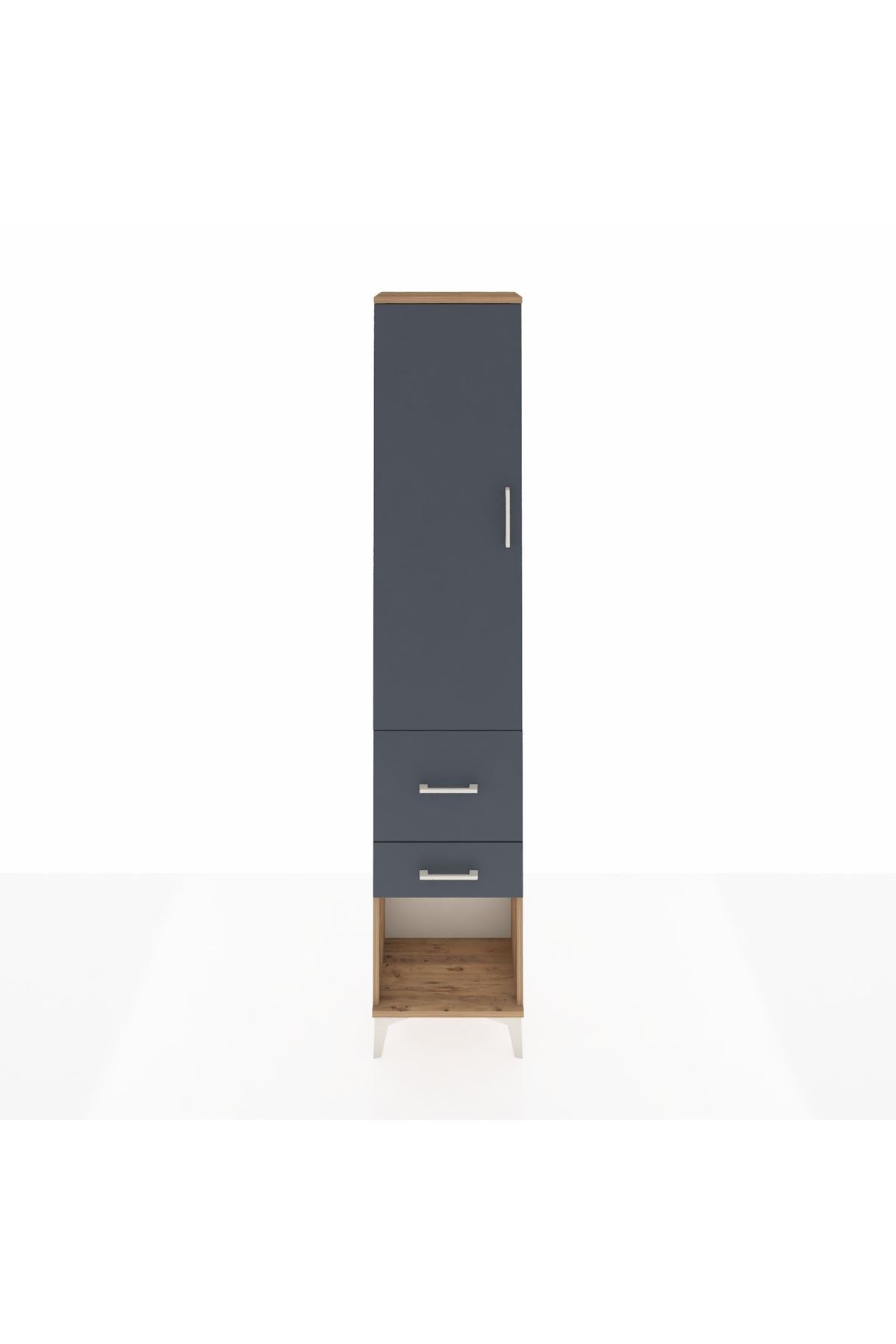 Arges Dolap 3 Raflı 2 Çekmeceli Tek Kapaklı 44x30x221 Çam-Antrasit
