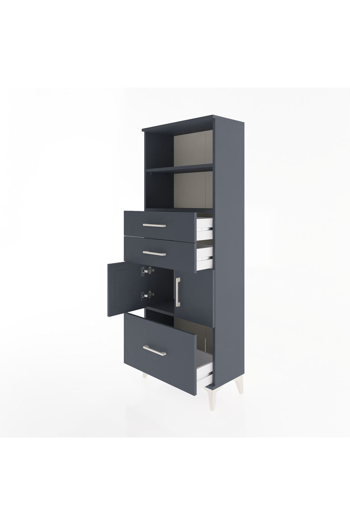 Arges Dolap 3 Raflı 3 Çekmeceli 2 Kapaklı 60x30x163 Antrasit-Antrasit