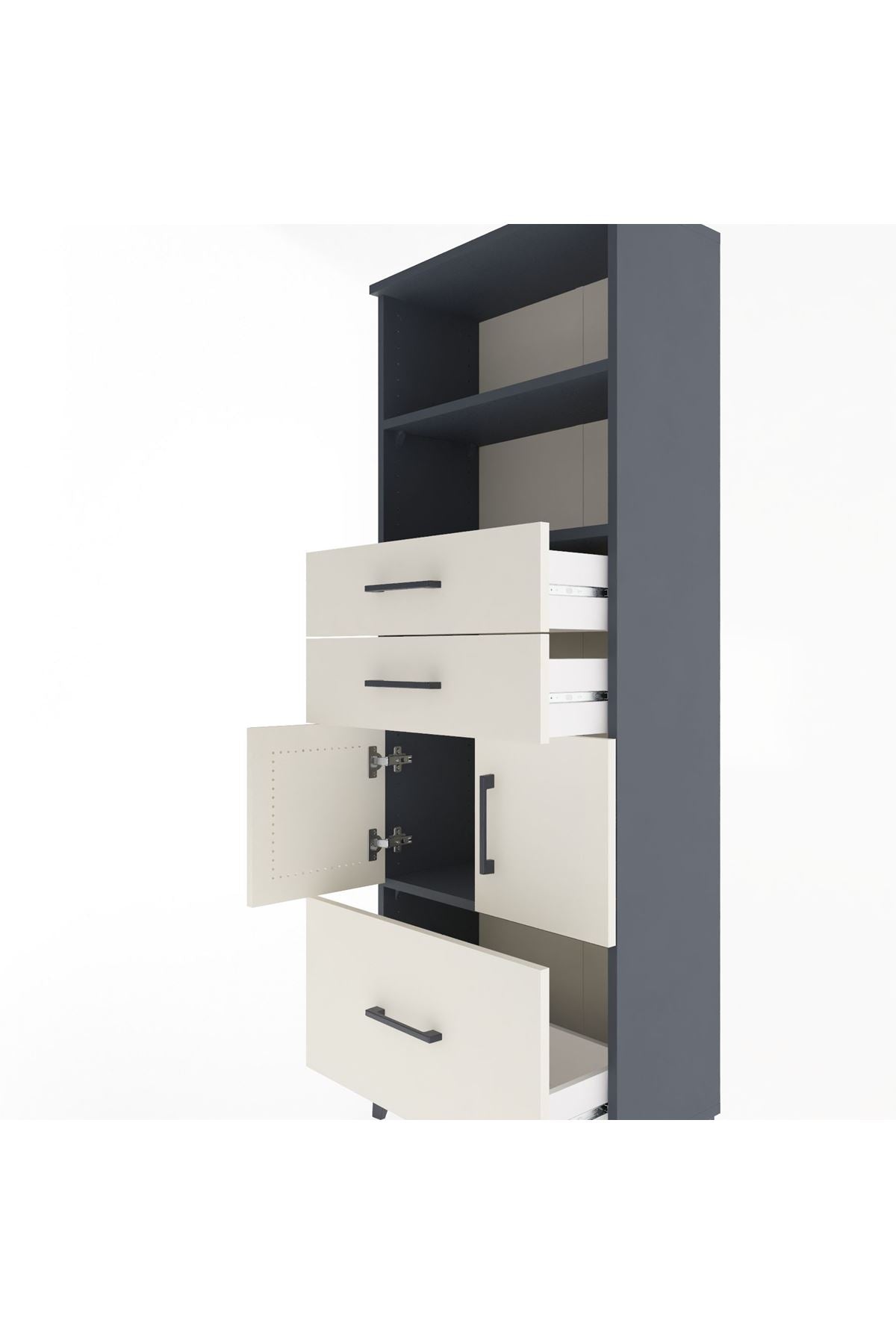 Arges Dolap 3 Raflı 3 Çekmeceli 2 Kapaklı 60x30x163 Antrasit-Aytaşı