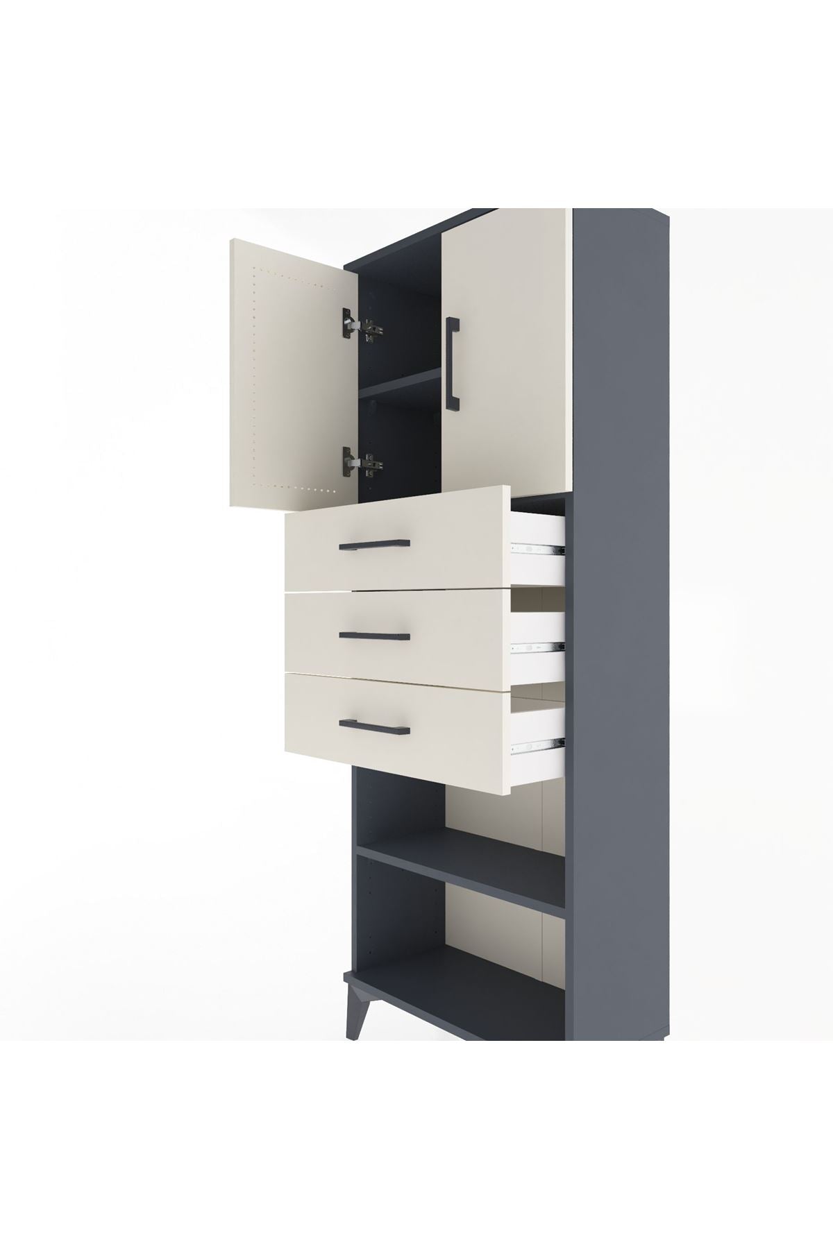 Arges Dolap 3 Raflı 3 Çekmeceli 2 Kapaklı 60x30x163 Antrasit-Aytaşı